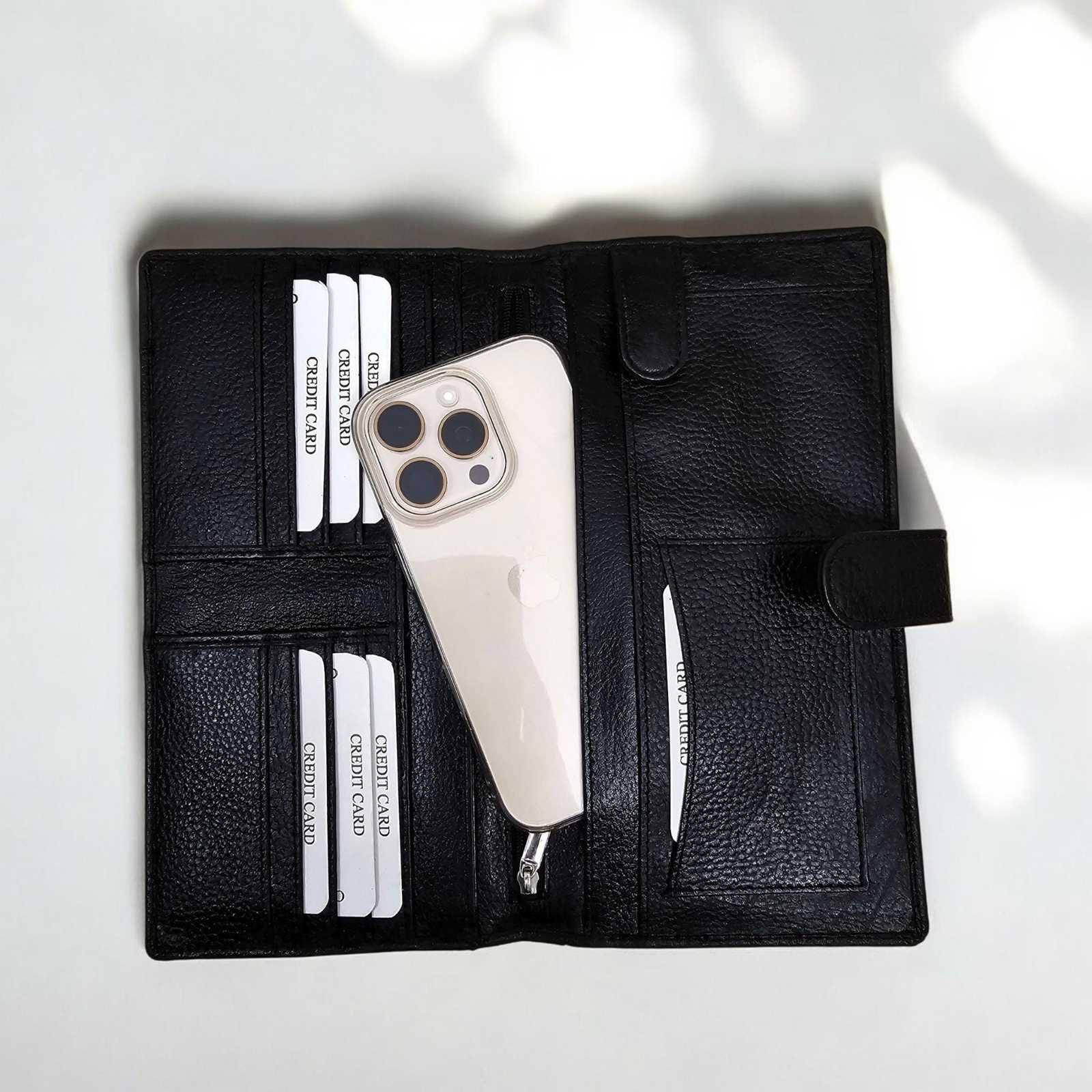 Stay effortlessly organized on the go with this spacious handmade leather wallet. Crafted from premium genuine leather, this elegant organizer combines style and utility—perfect for travelers and professionals alike.