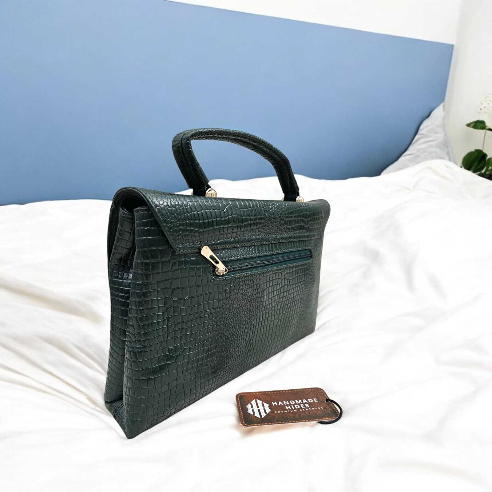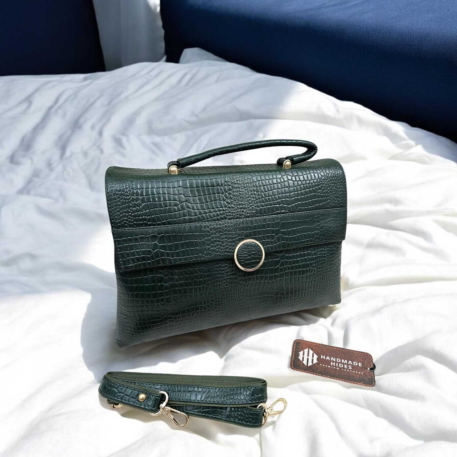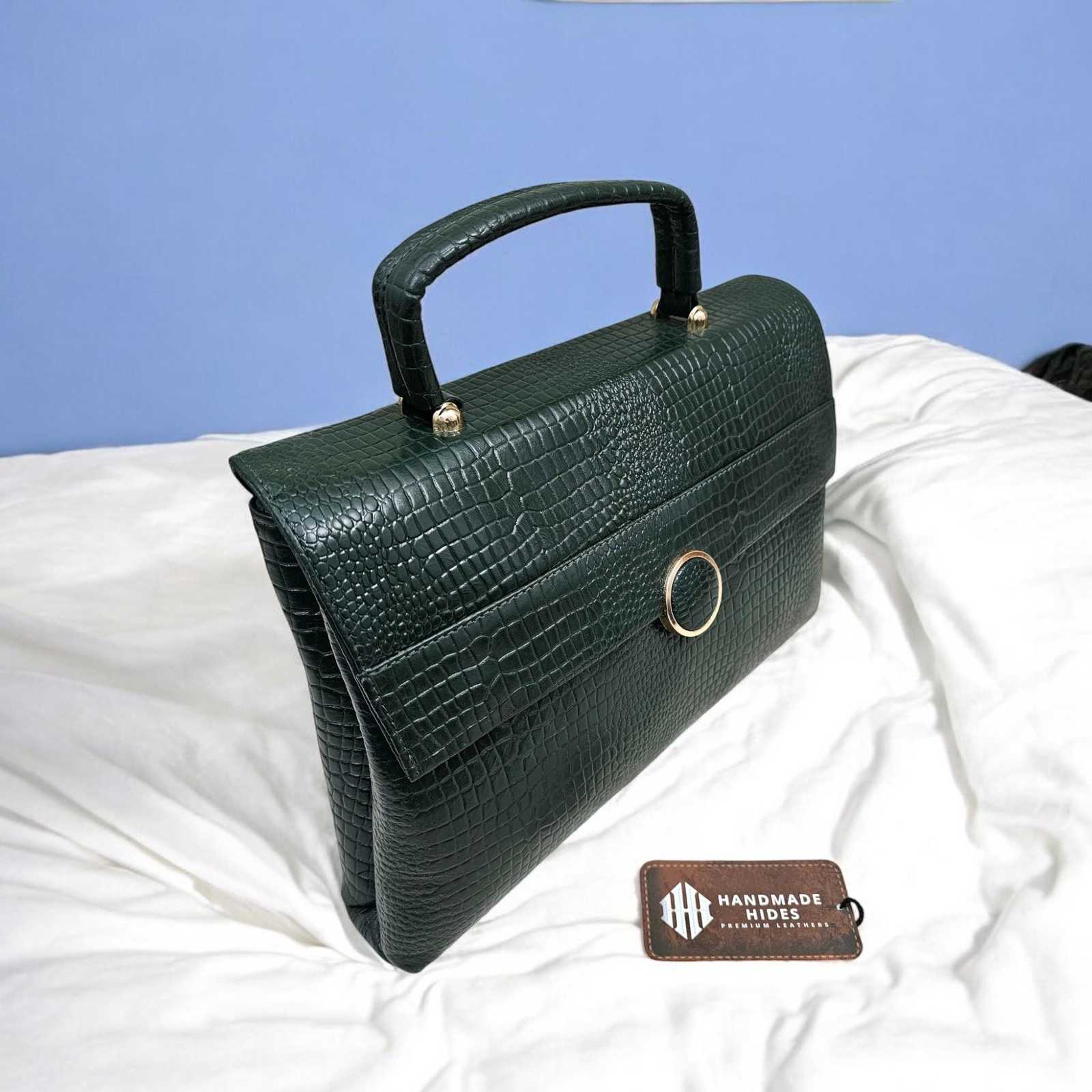 Leather Handbag Women – Crocodile Textured Handmade Bag, Top Handle & Crossbody