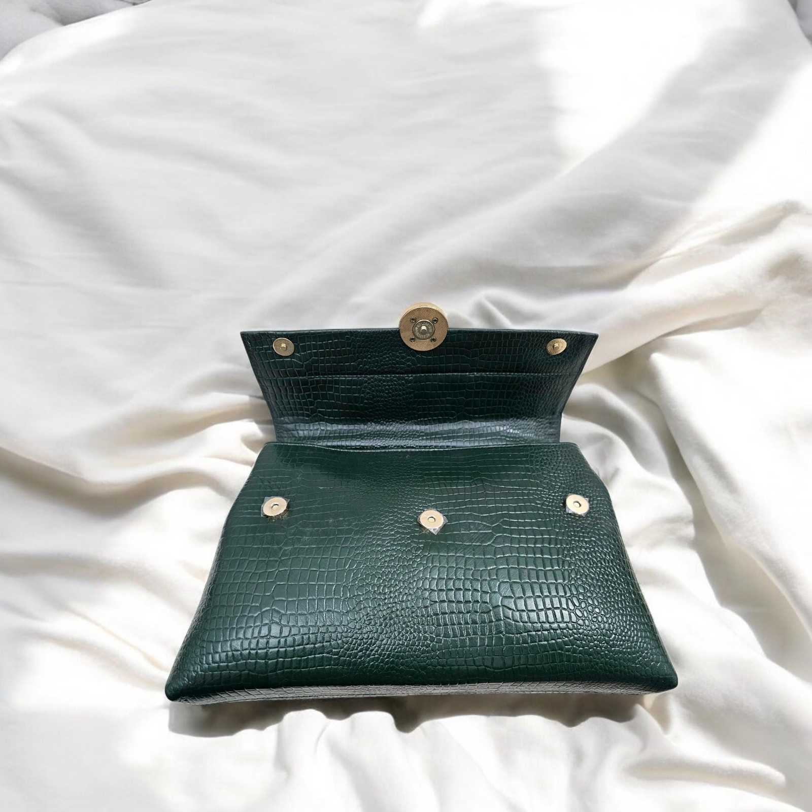 ? Click “Add to Cart” now and bring home this crocodile-textured leather handbag—a perfect blend of luxury and everyday utility.