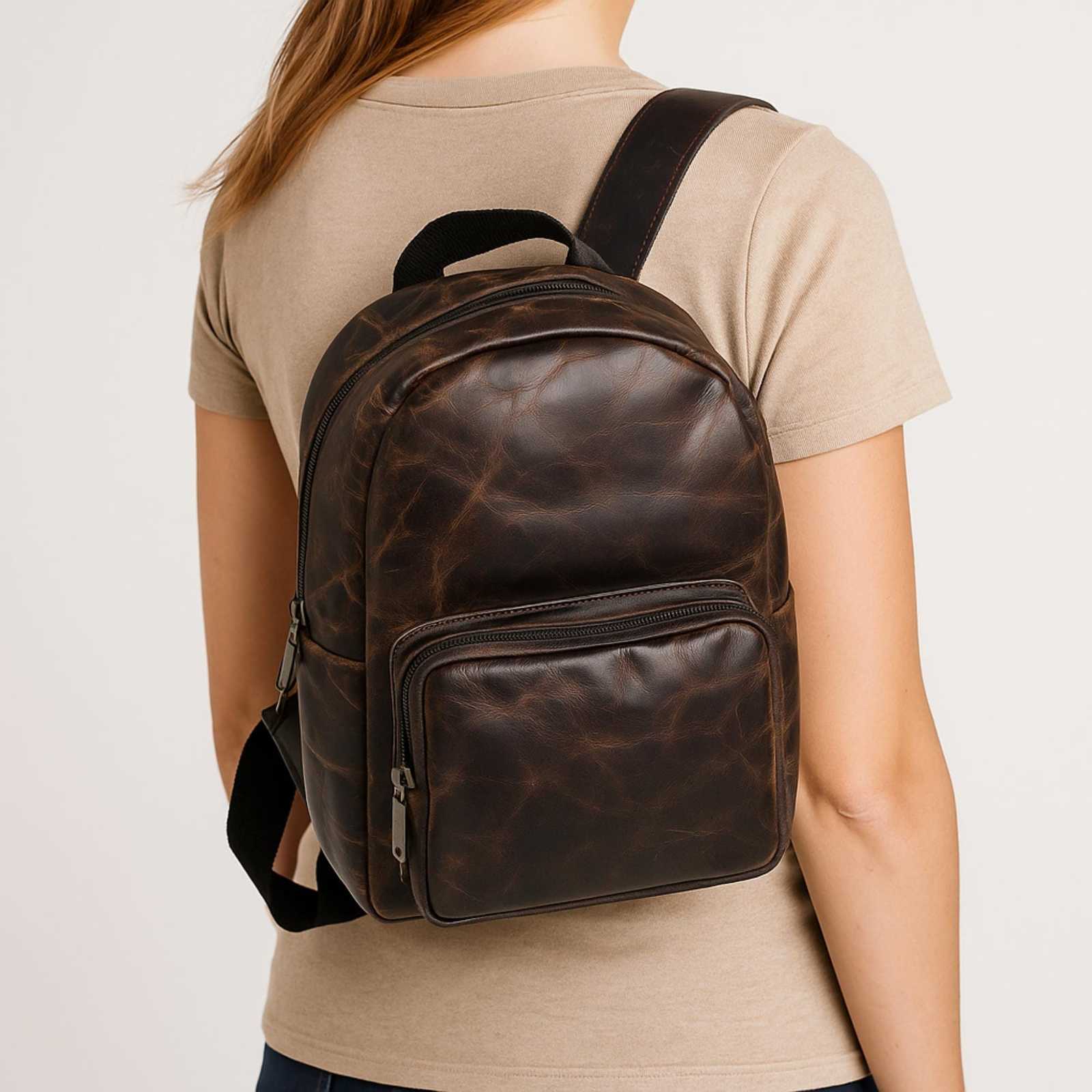 Leather Backpack – Small Vintage Crossbody Rucksack, Handmade Bag for Women & Me