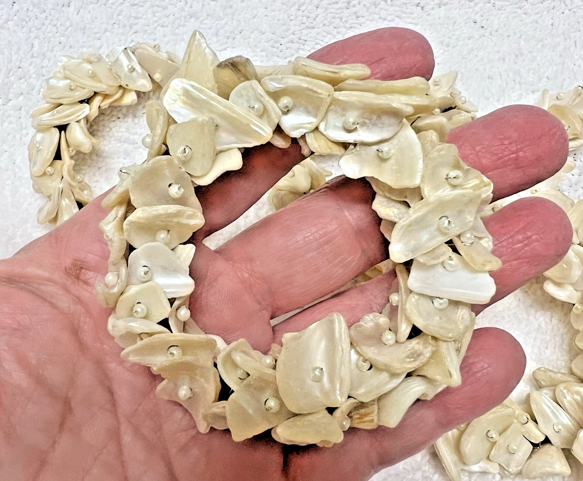 8 Mother Of Pearl Chunks Napkin Ring Holders Beach Ocean 2 3/4" Across Just beautiful
