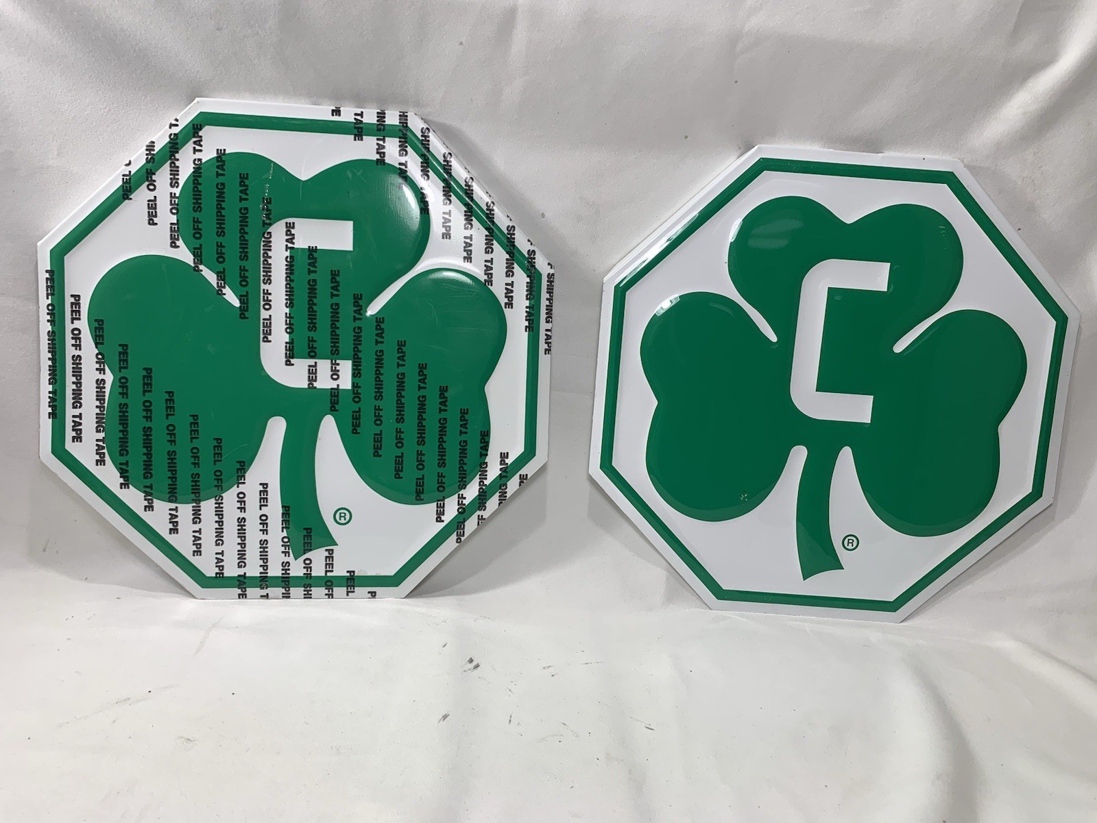 2 CLEARY Farm BUILDING "SHAMROCK" SIGN / TOPPER / NEW OLD STOCK 14 3/4"