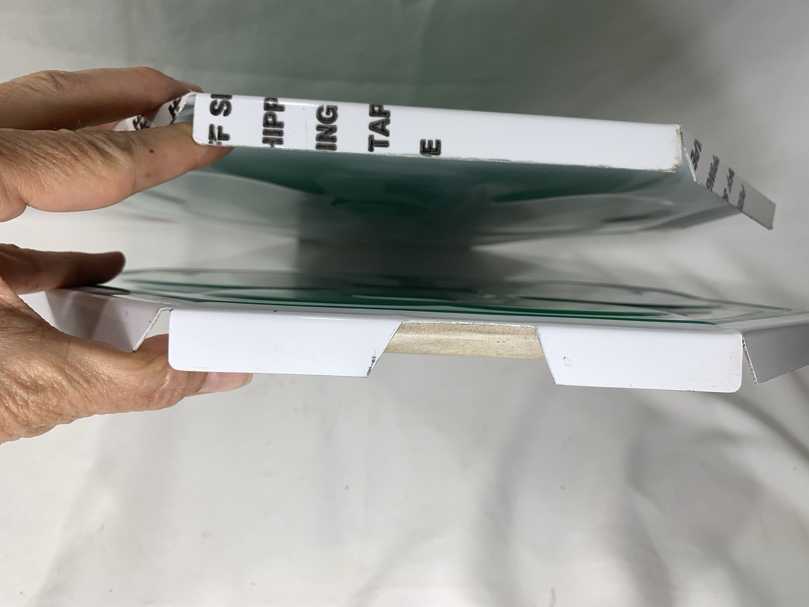 This is for 2 CLEARY Barn or Building sign/emblems, that would typically be mounted on the peaks of the barns. These are 14 3/4" x 3/4", and are made of thin metal, not sure what kind, or even if they are a couple of the originals, like new old stock or just new, as there is no maker mark or indication of age. Both are in super shape, with a bit of embossed portions where the ink is showing emphasizing it a slight bit more. They have never been hung, and one still has the peel sticker on the front of it for protection. Found both nestled together, with the bottom one, having a slightly different top, indicating it may have rested on a peak point or something. The back side has a piece of sticker rolled on it, not sure why, but think it may have been a separator of sorts, possibly when originally stacked with others in a lot, making it easier to separate them into sets.