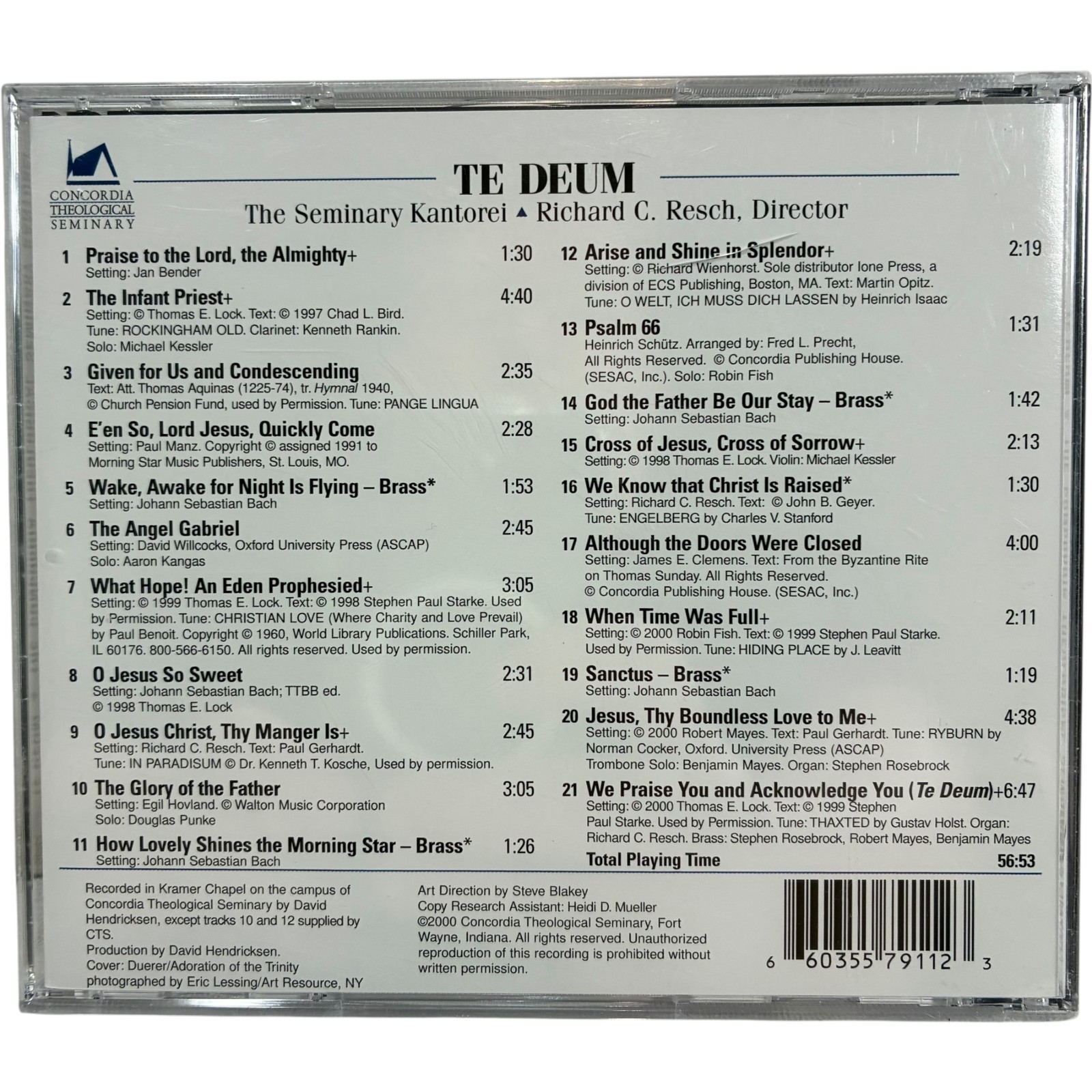 KANTOREI TE DEUM Concordia Theological Seminary (CD, 2000, CTS) NEW SEALED