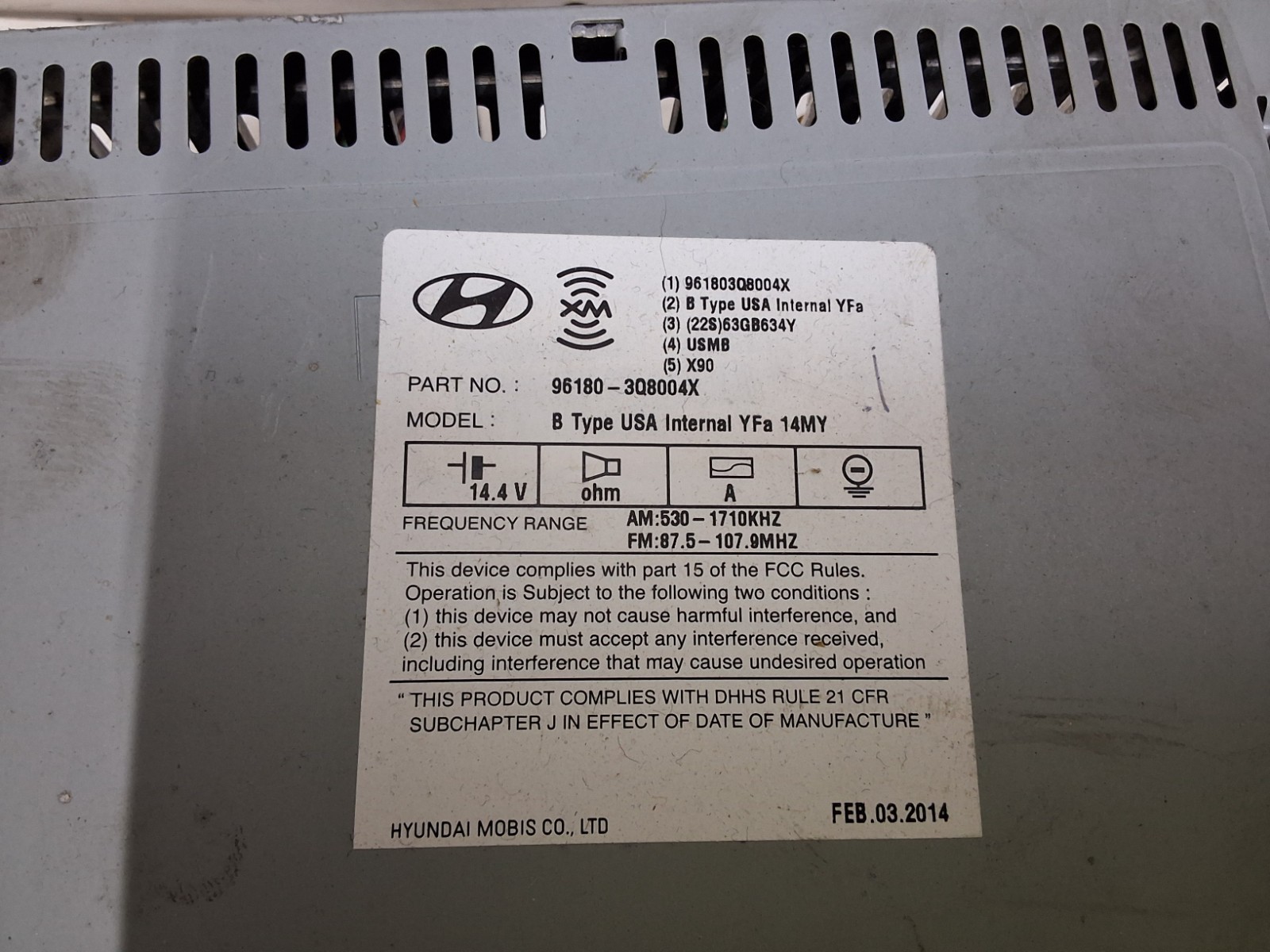 2014 to 2015 Hyundai Sonata AM/FM CD radio receiver. Part number 96180-3Q8004X.