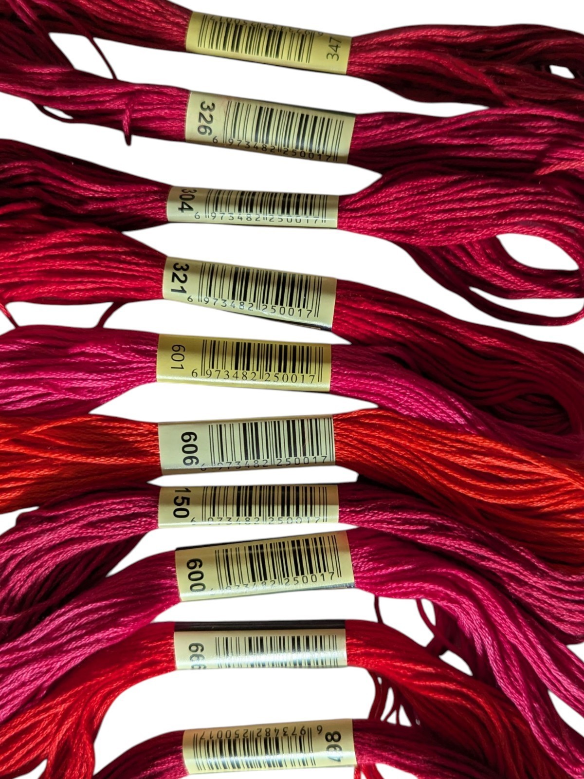 10 Skeins Embroidery Floss Polyester Threads Red Shades 606 304 347 321 601 150+