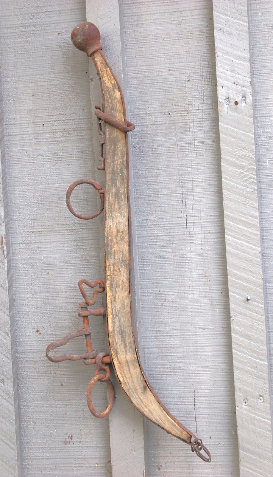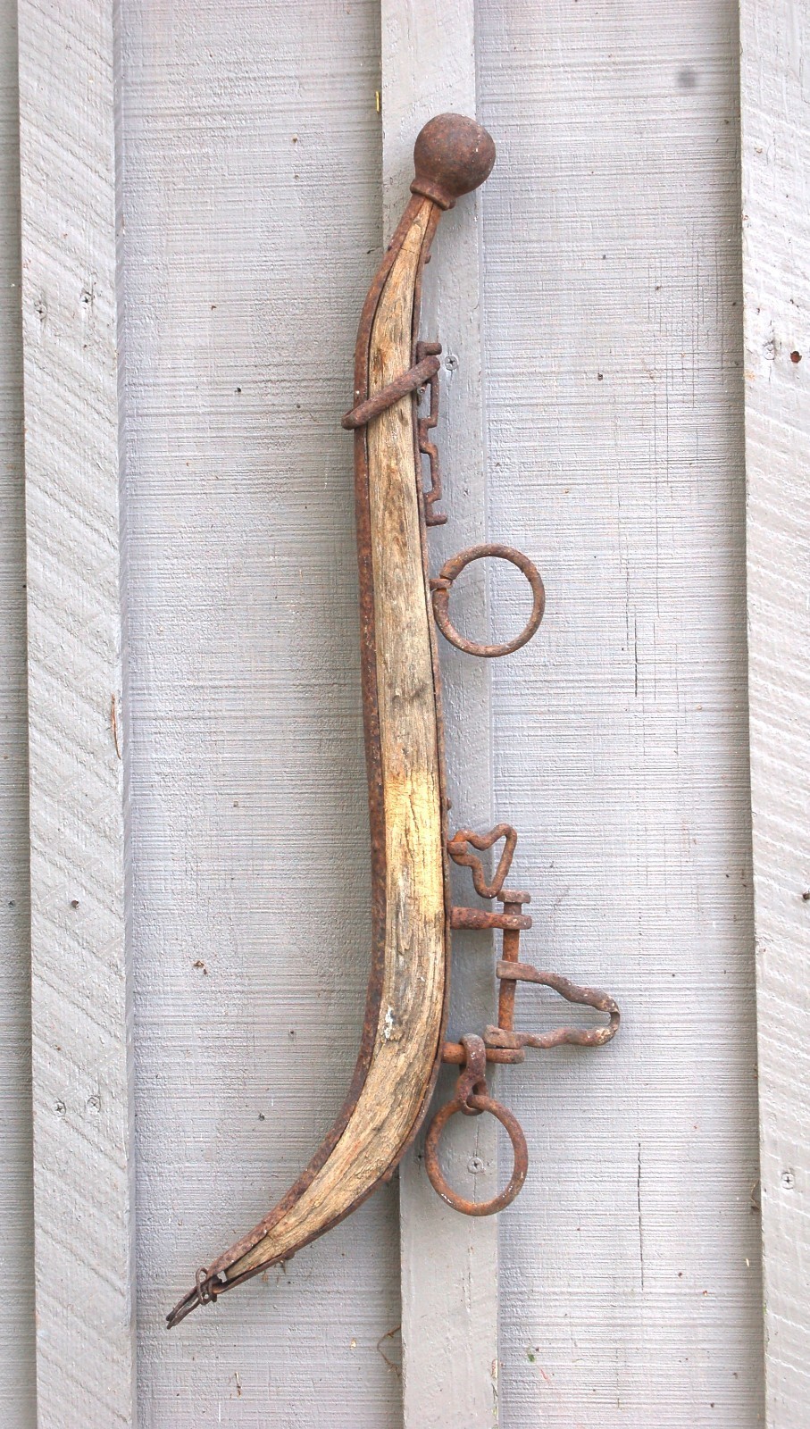 Antique Rustic Wooden Horse Hame Steel Ball Knob Farm Tool Western a