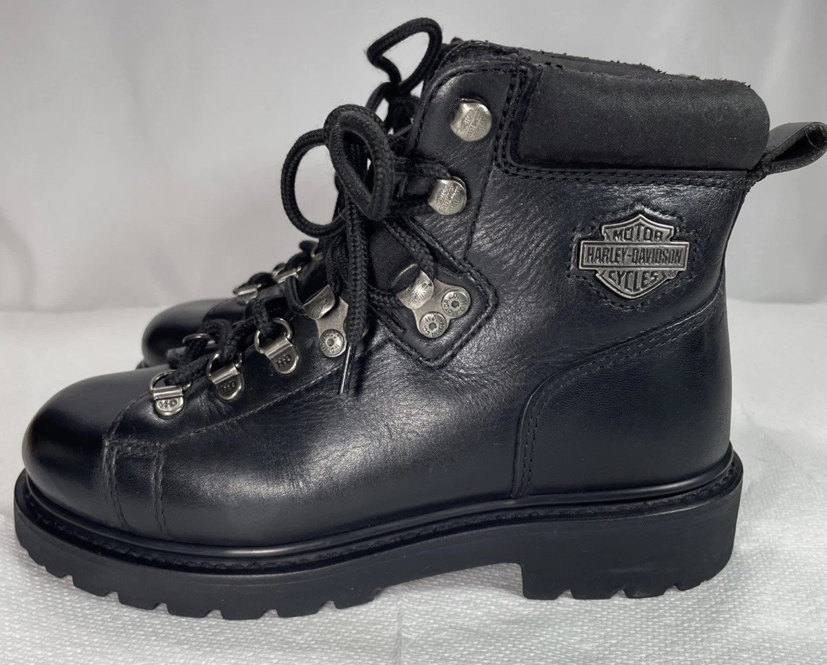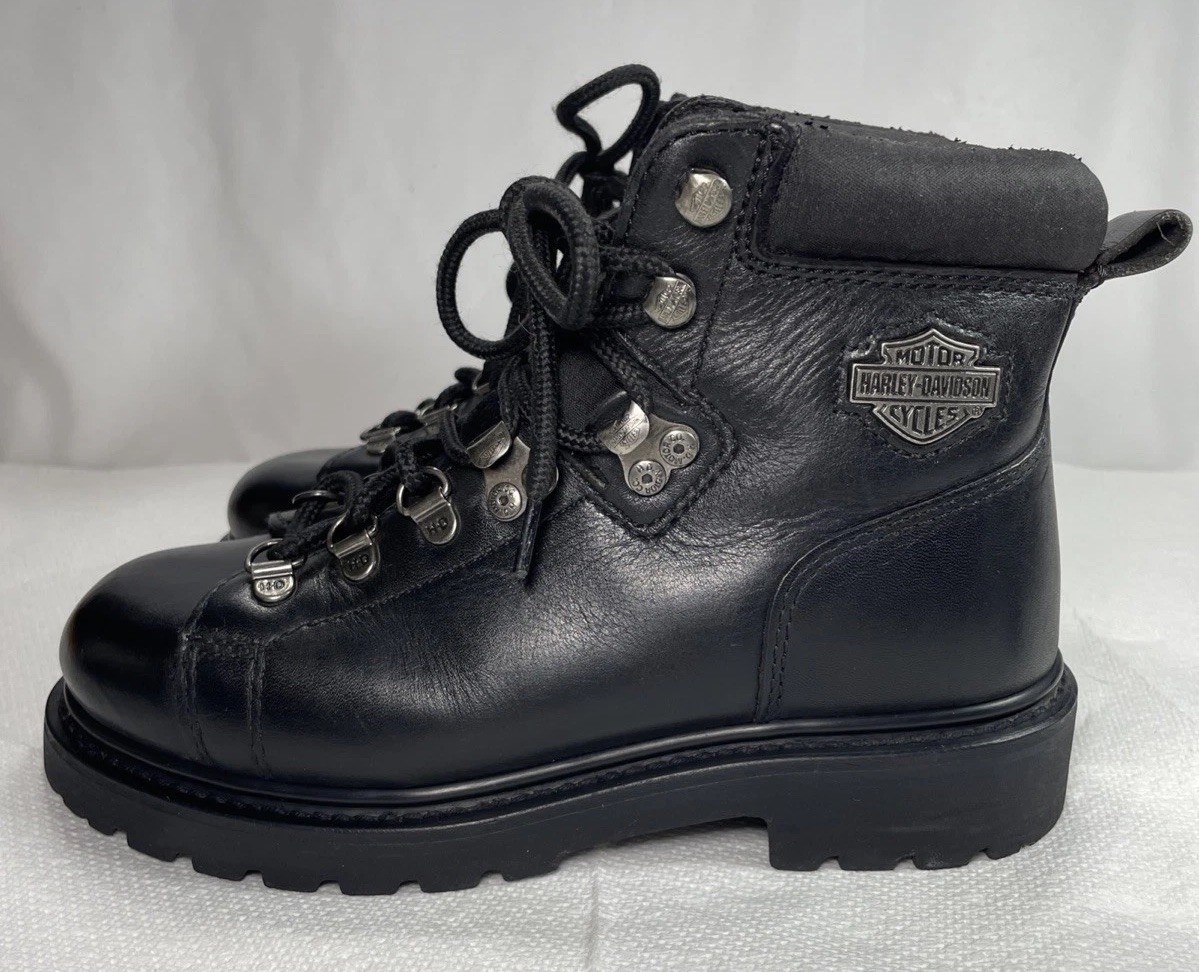 Harley Davidson Boys Boots Size 5.5 Black Leather D81610 Motorcycle Boots