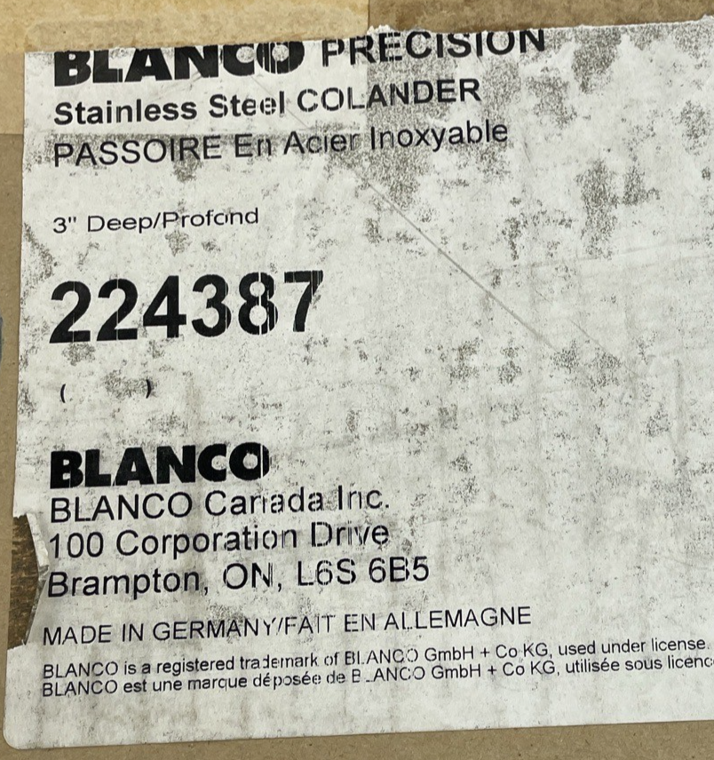 OEM BLANCO Model # 224387 Precision/ Quatrus Colander in Stainless Steel