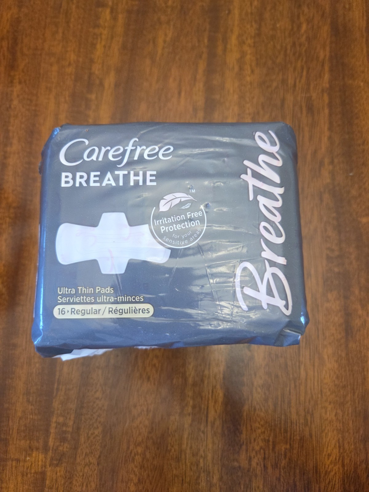 Carefree Breathe Ultra Thin Pads Regular Absorbency 16 Count 1 package as pictured