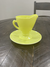 Hazel Atlas Chartreuse Lime Green Yellow Glass Cream and Saucer Platonite