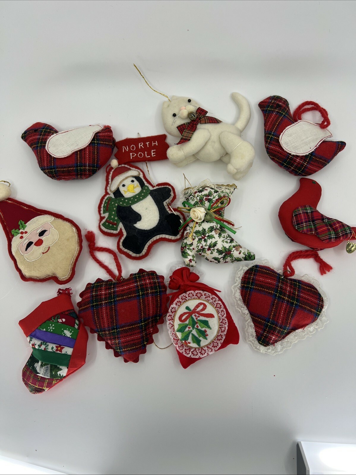 Lot 11 VTG Stuffed Fabric Christmas Ornaments Patchwork Handmade Felt Plaid