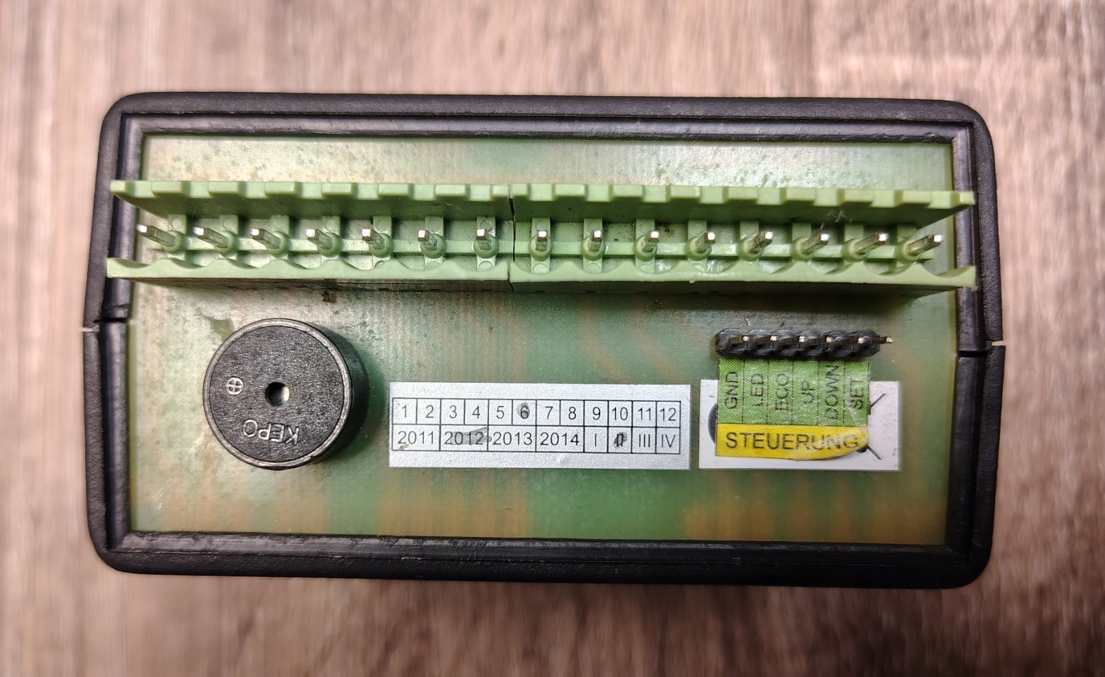 +IN/ –IN/ GND / +5V (sensor), Steuerung (SET, UP, DOWN, ECO, LED) |