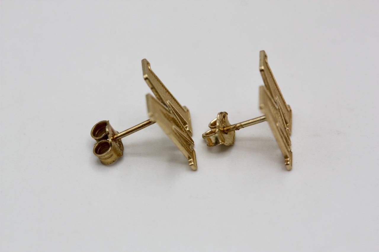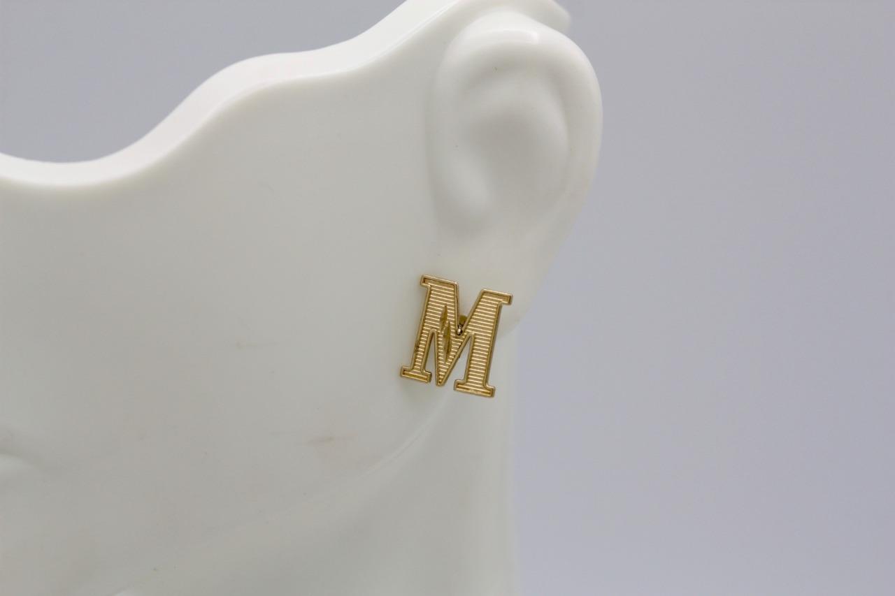 10K Yellow Gold Satin Finish Fluted Initial Letter M Stud Earrings 10mm 1.3gr