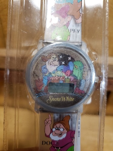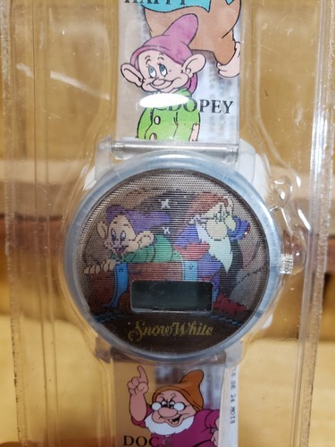 Vintage 1990s Holographic Face Disney Snow White & 7 Seven Dwarfs Themed Watch