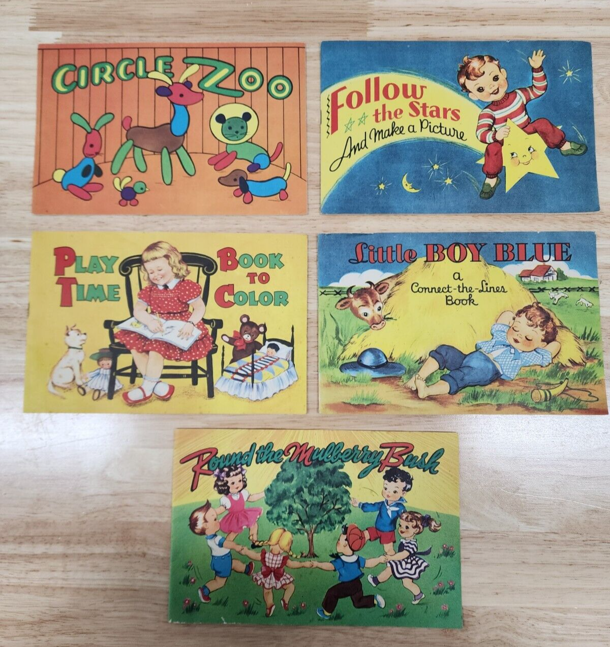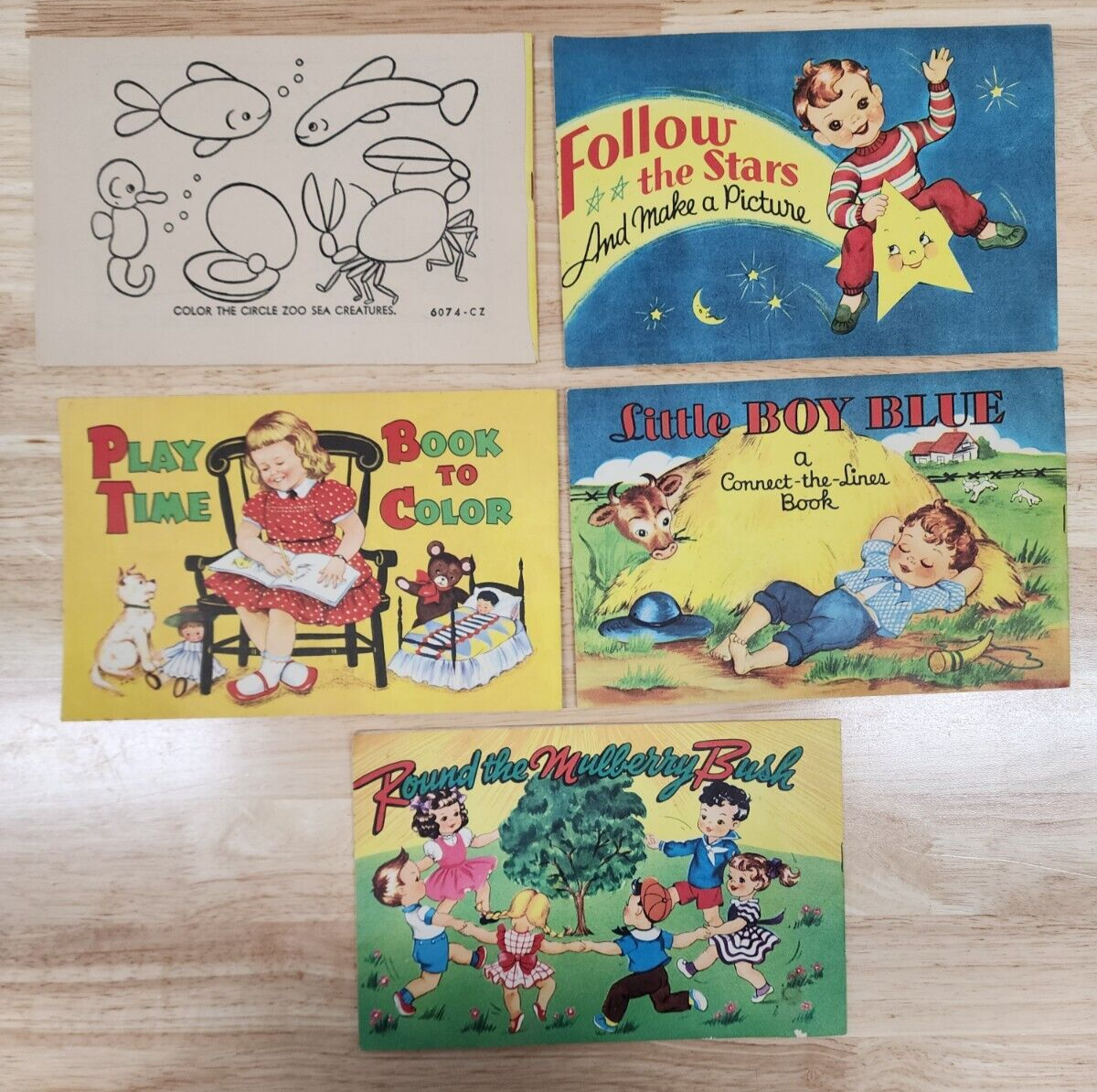 Lot of 5 vintage 1953 Saalfield Pub Co Coloring Activity Books USA