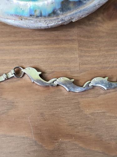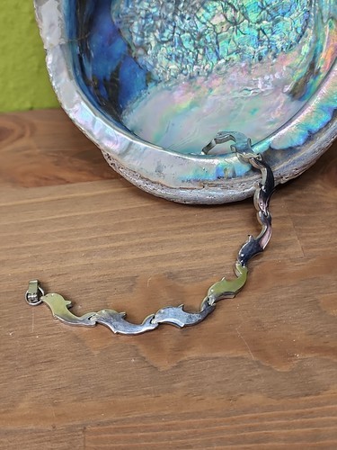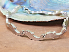 925 Sterling Silver Shiny Dolphin Motif Fetish Link Chain Bracelet Vintage 7.5"
