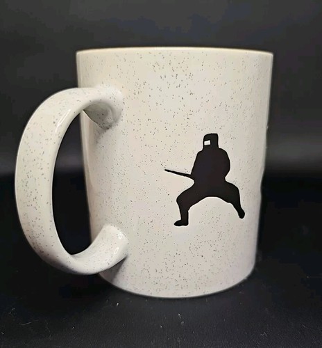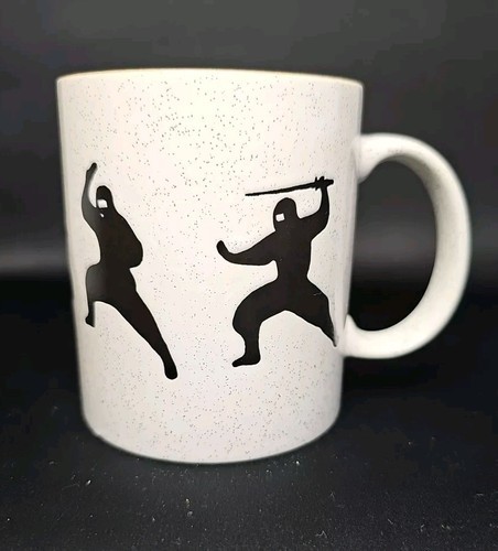 UP FOR SALE: Japanese NINJA 3-5/8"H Coffee Tea Mug Ceramic Made in Japan White Black
