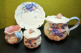 Victorian Lace Collection by FITZ & FLOYD Hydrangea 4 pc Tea Set 1993 Vintage