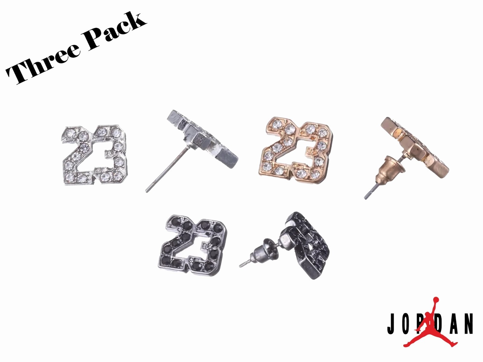 NEW Michael Jordan Jumpman 23 Basketball CZ Stud Hip Hop Bling Earrings, 3 PACK