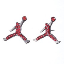 Mens and Womens Silver-Plated Basketball Player Slam Dunk Man Earrings | Red Crystal Rhinestones Iced Out CZ Stud Earring