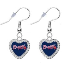 NEW WOMENS MLB ATLANTA BRAVES SILVER CRYSTAL HEART EARRINGS | DANGLE DROP