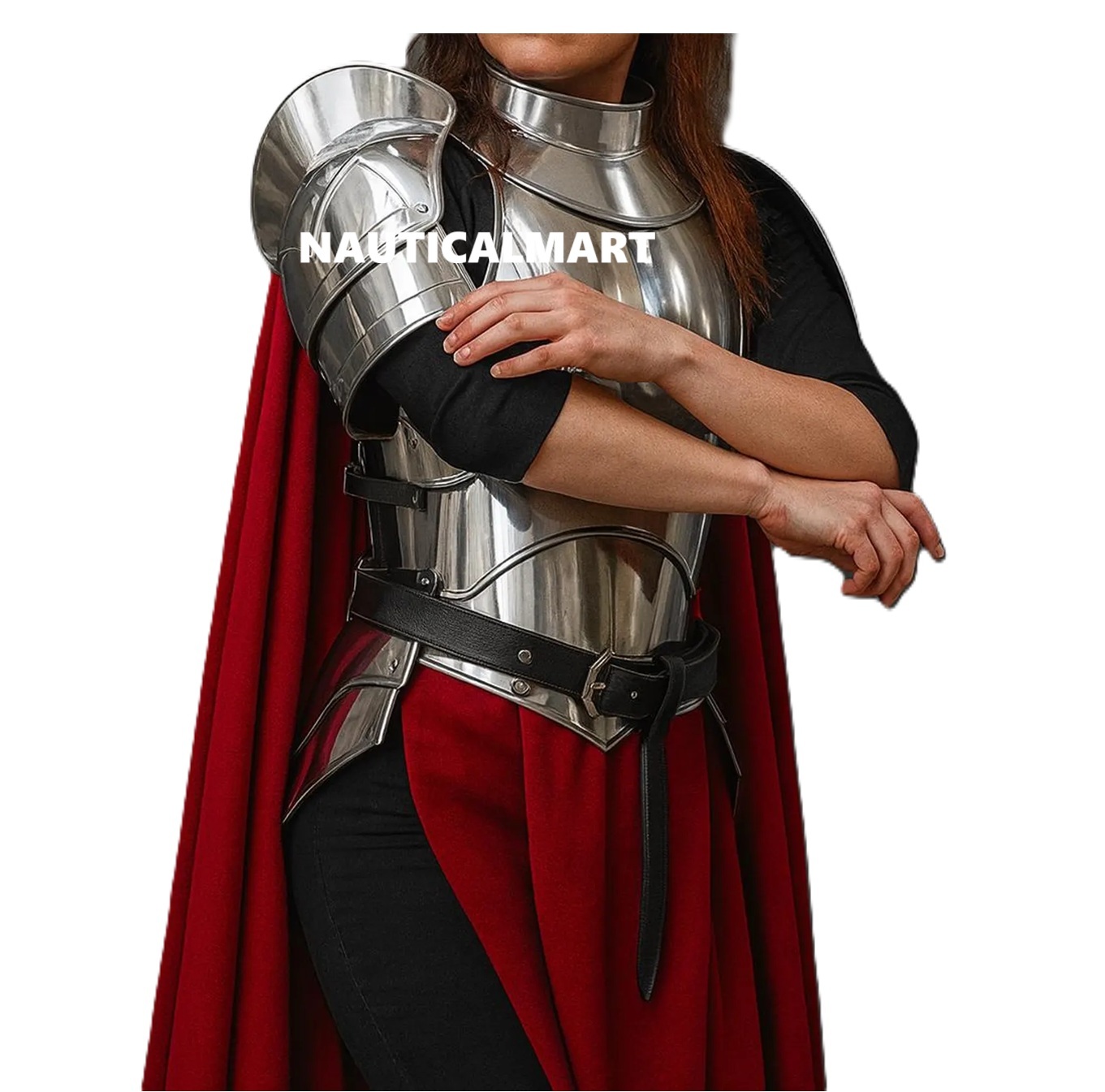 Half Lady Knight Armor Set | Cuirass, Leg Guards, Pauldrons With Gorget | Medieval Templar Armor for LARP, Cosplay Reenactment