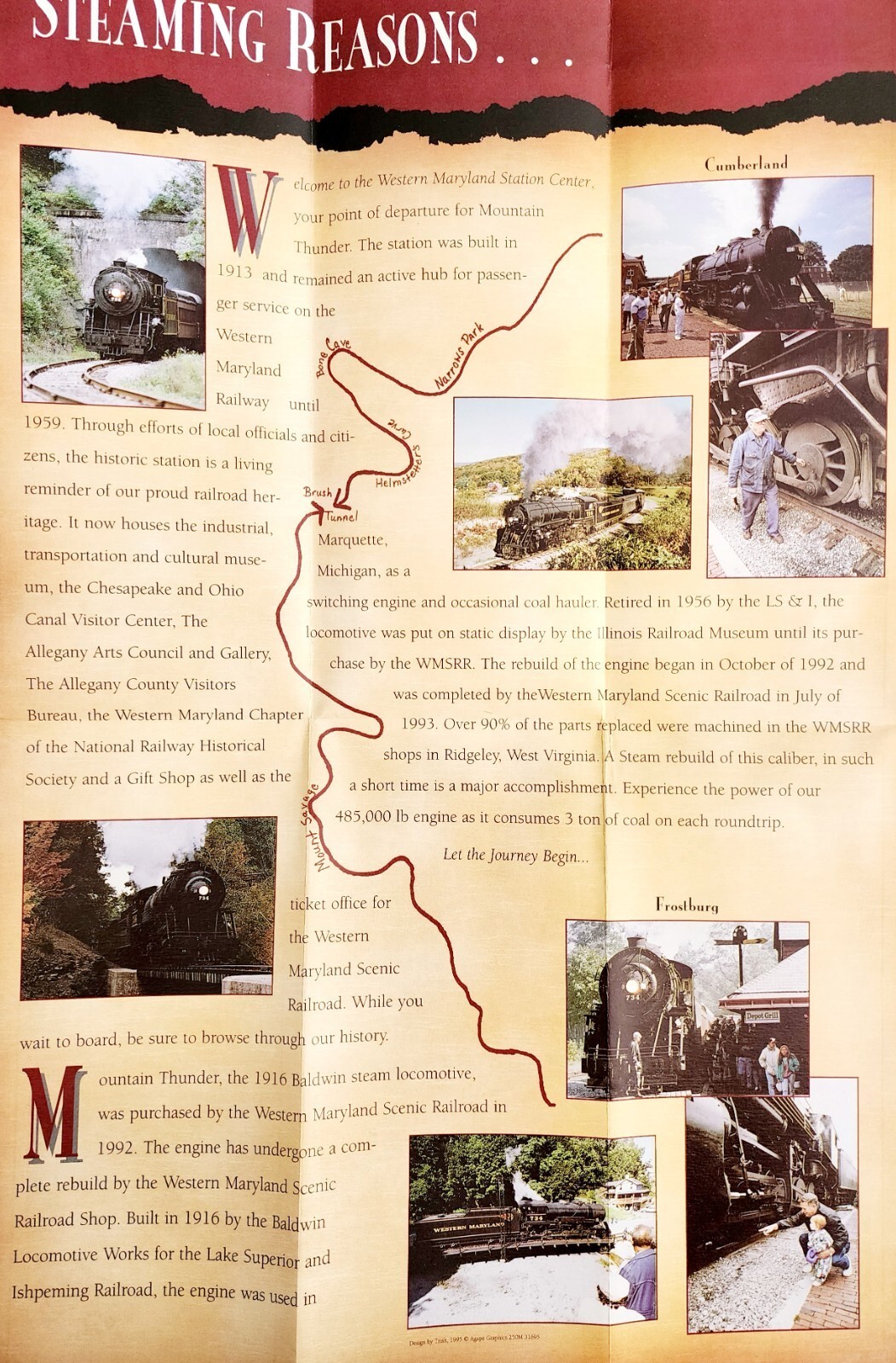 1995 Western Maryland Railroad Mountain Thunder Brochure Vintage Pamphlet F13E