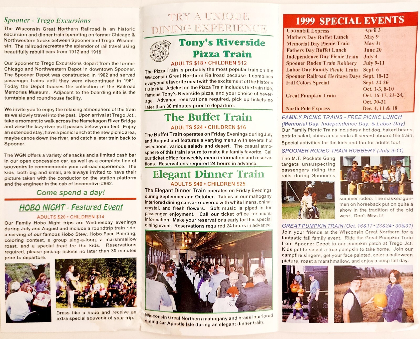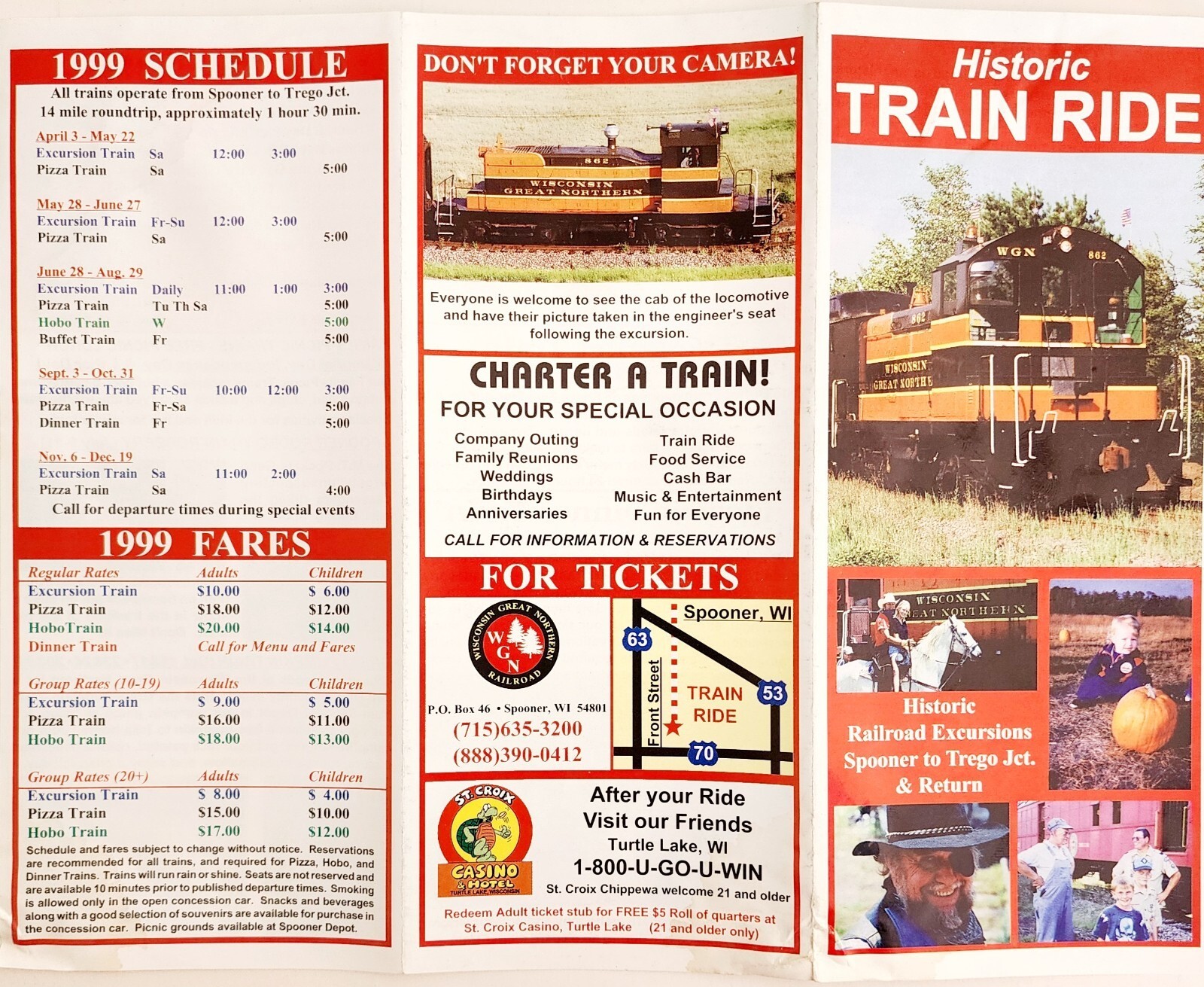 1999 Wisconsin Great Northern Railroad Vintage Brochure Historic Train Ride F13E