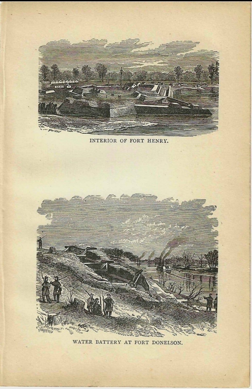 Interior At Fort Henry and Water Battery at Fort Donelson Original 1884 Print First Edition 5 x 7