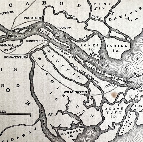 Civil War Map Fort Pulaski And Its Environs 1862 Victorian Military DWY3
