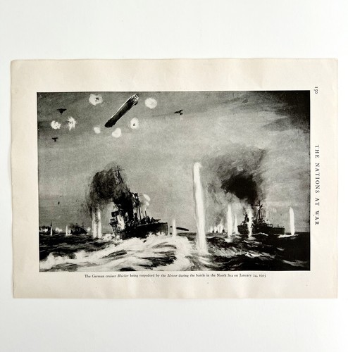 German Blucher Torpedoed By Meteor WW1 Print 1917 Battle In North Sea SmDwC5