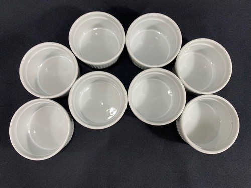 8 Pier 1 Porcelain Ribbed Ramekin Custard Bowls Set A - 3 1/2"