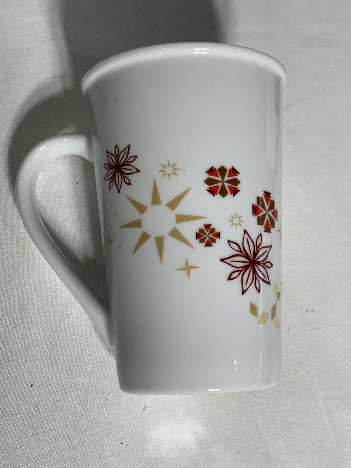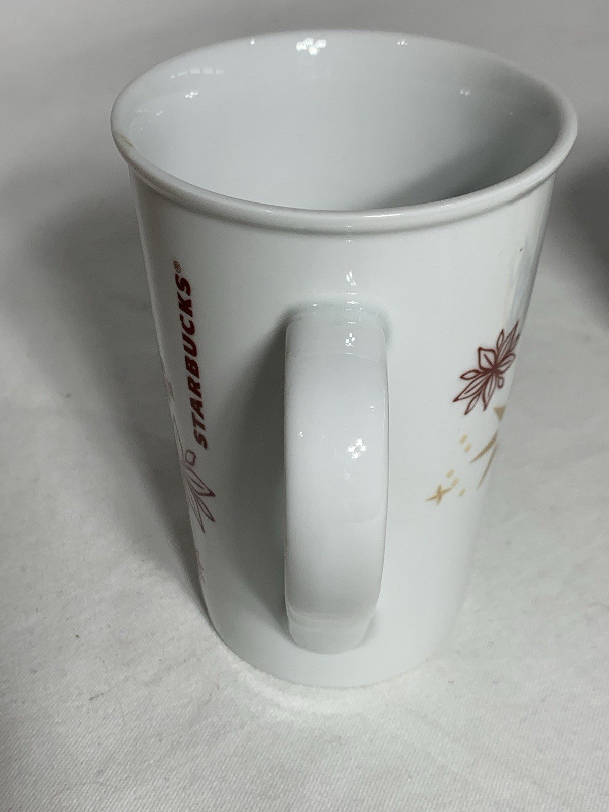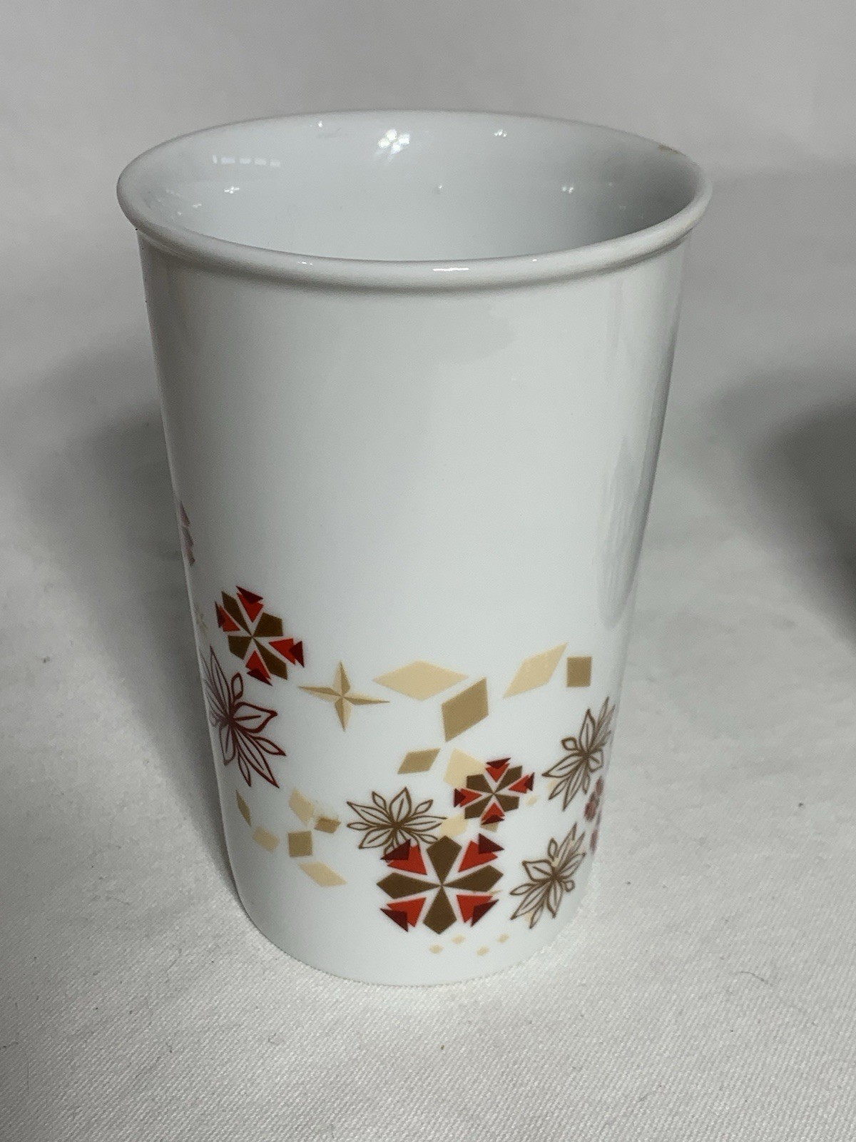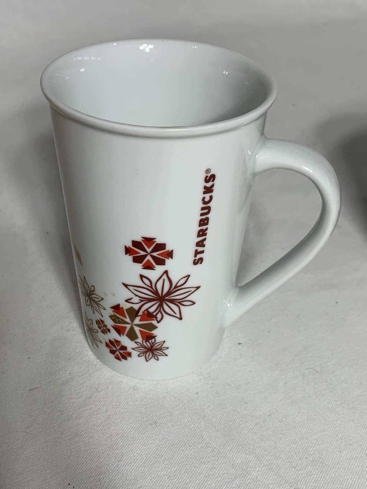 2- Starbucks 2013 Tall Winter Snowflake Poinsettia Holiday Coffee Mugs
