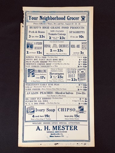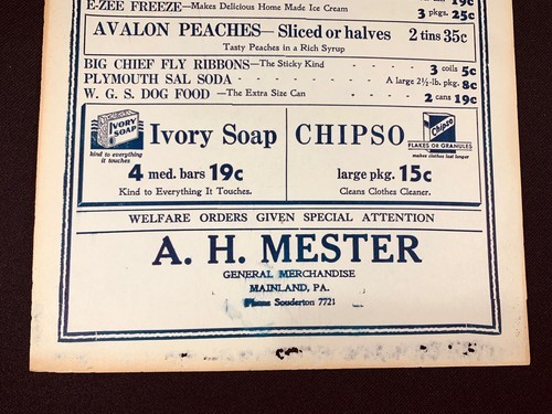 A.H. MESTER General Merch "YOUR NEIGHBORHOOD GROCER" Mainland, PA Est 1934 AD C
