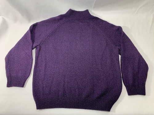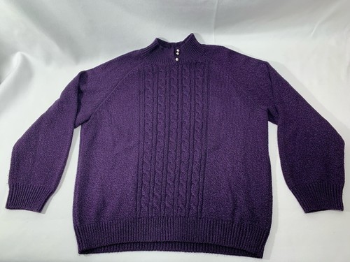 Karen Scott Womens XL Sweater Cable Knit 3 Button Mock Neck Deep Purple Heather