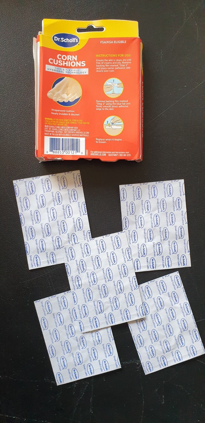 Dr.Scholl's Corn Cushions Pain Relief Thin Flexible Hydrogel Technology.