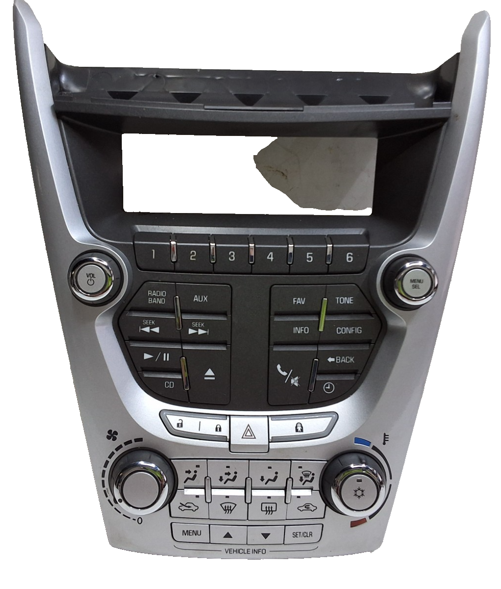 2010 to 2011 Chevrolet Equinox heater AC radio control panel assembly without heated seats. Part number 20920042.