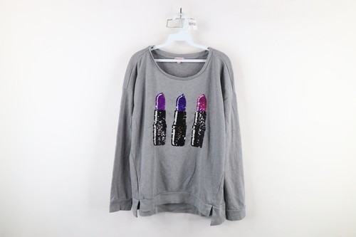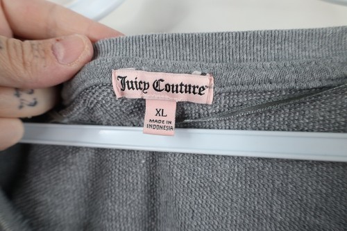 Vintage Y2K Juicy Couture Womens XL Baby Doll Sequin Lipstick Sweatshirt Gray