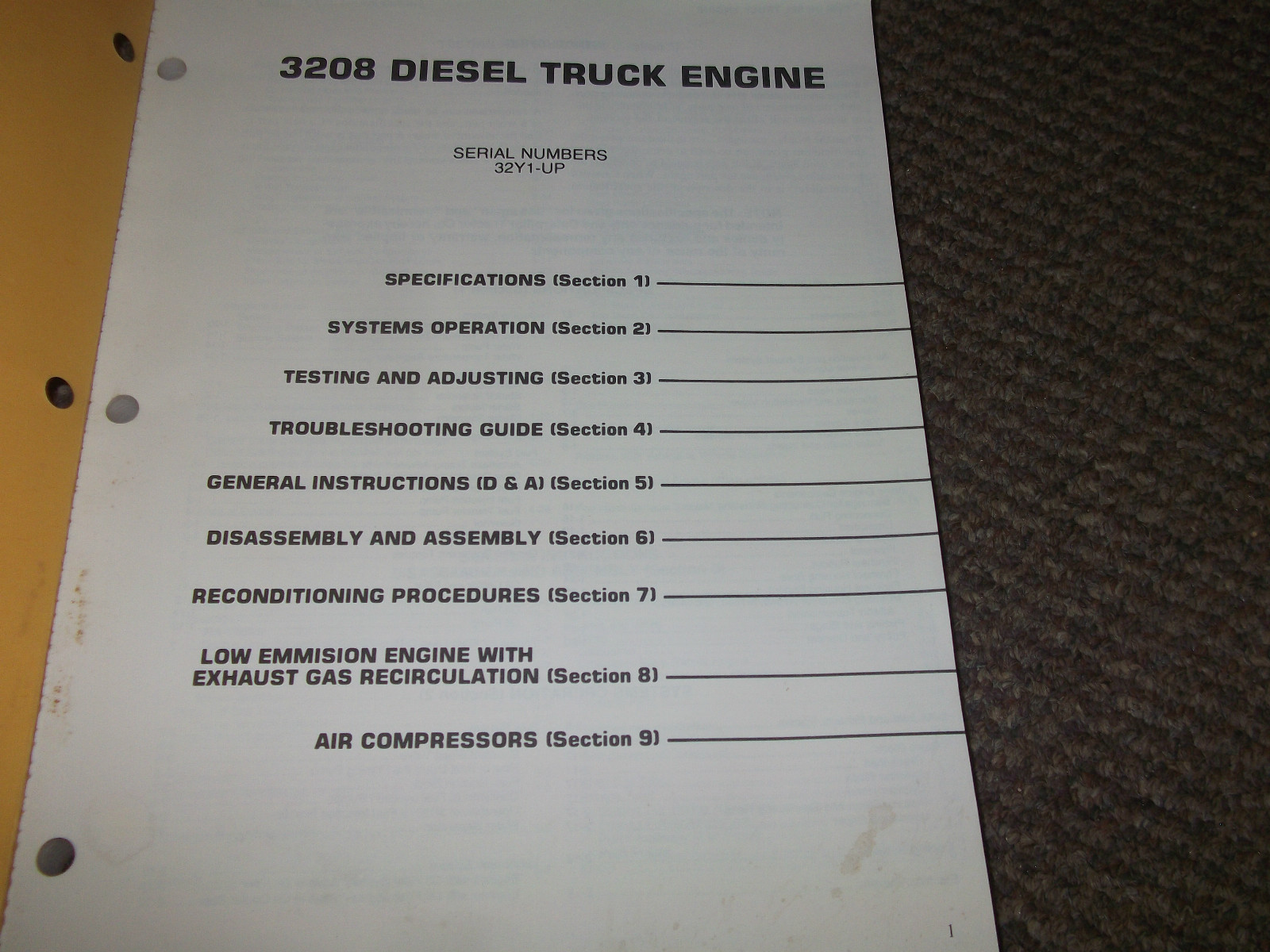CATERPILLAR 3208 DIESEL TRUCK ENGINE Service Shop Manual SERIAL NUMBERS 32Y 1-UP