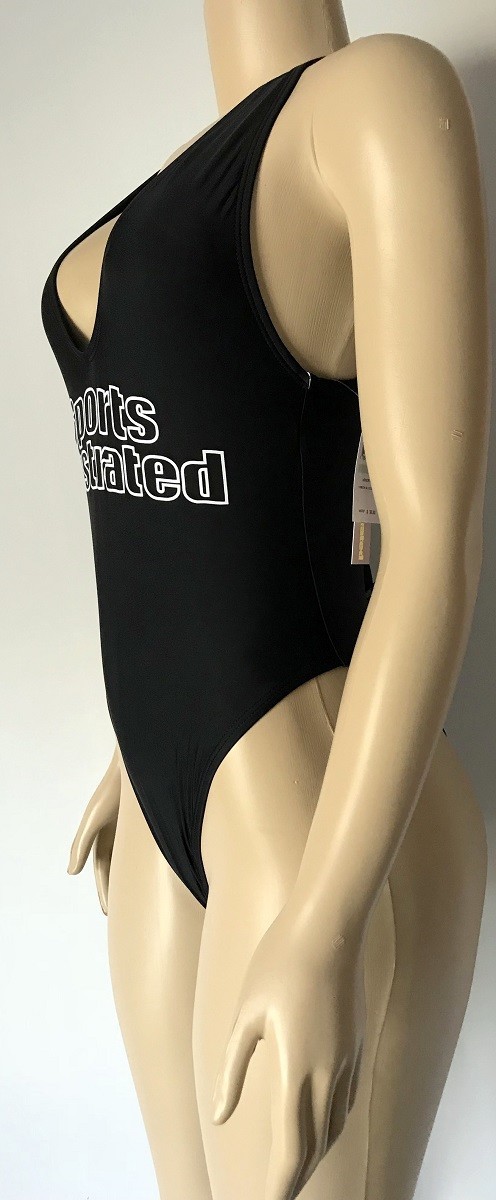 Sports Illustrated Swimsuit Women's High Leg Low Plunge SI Logo One-Piece, Black