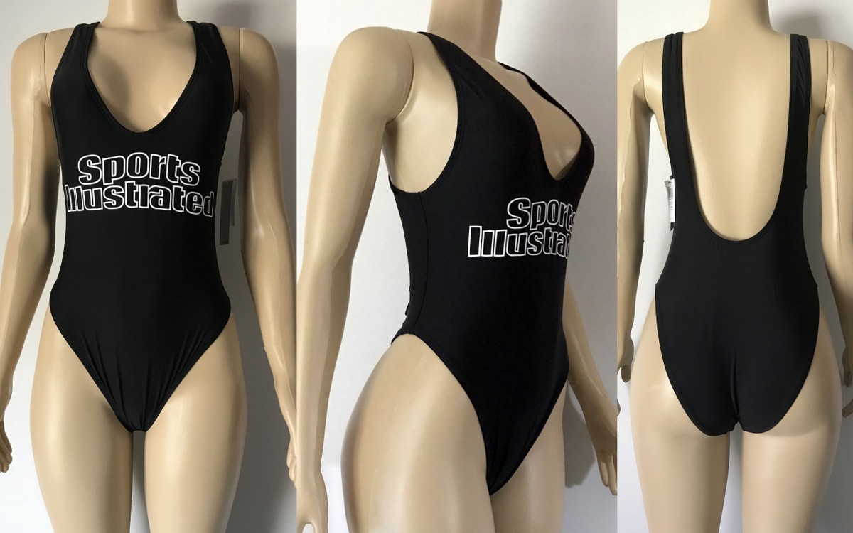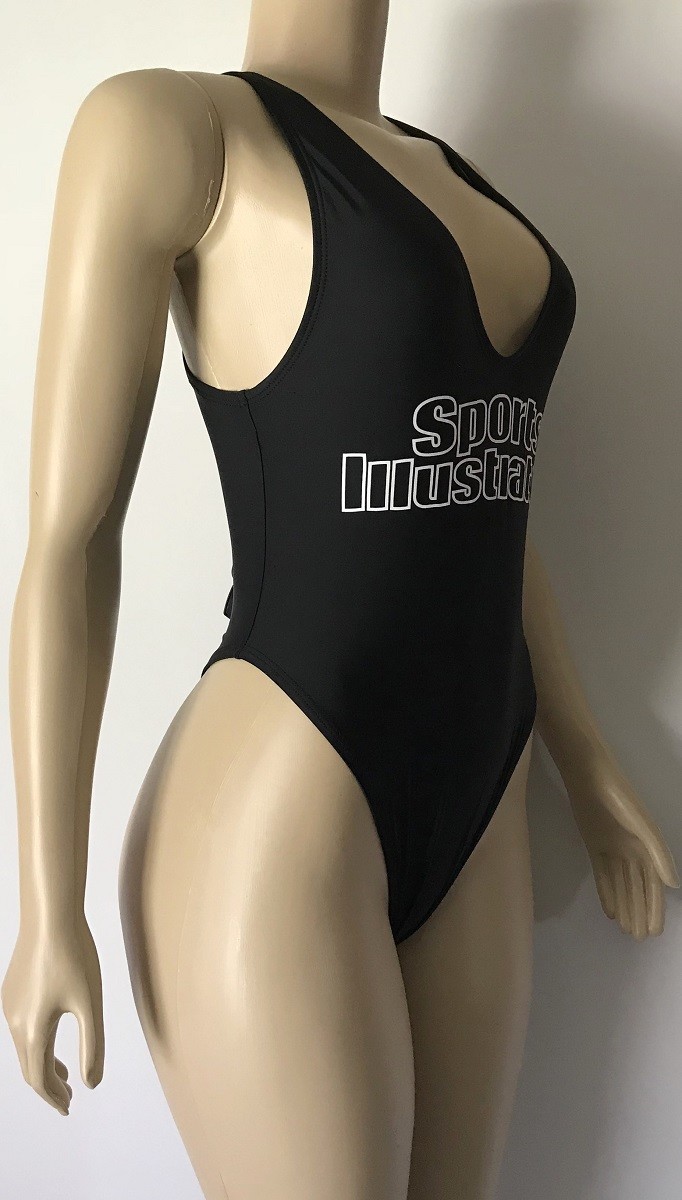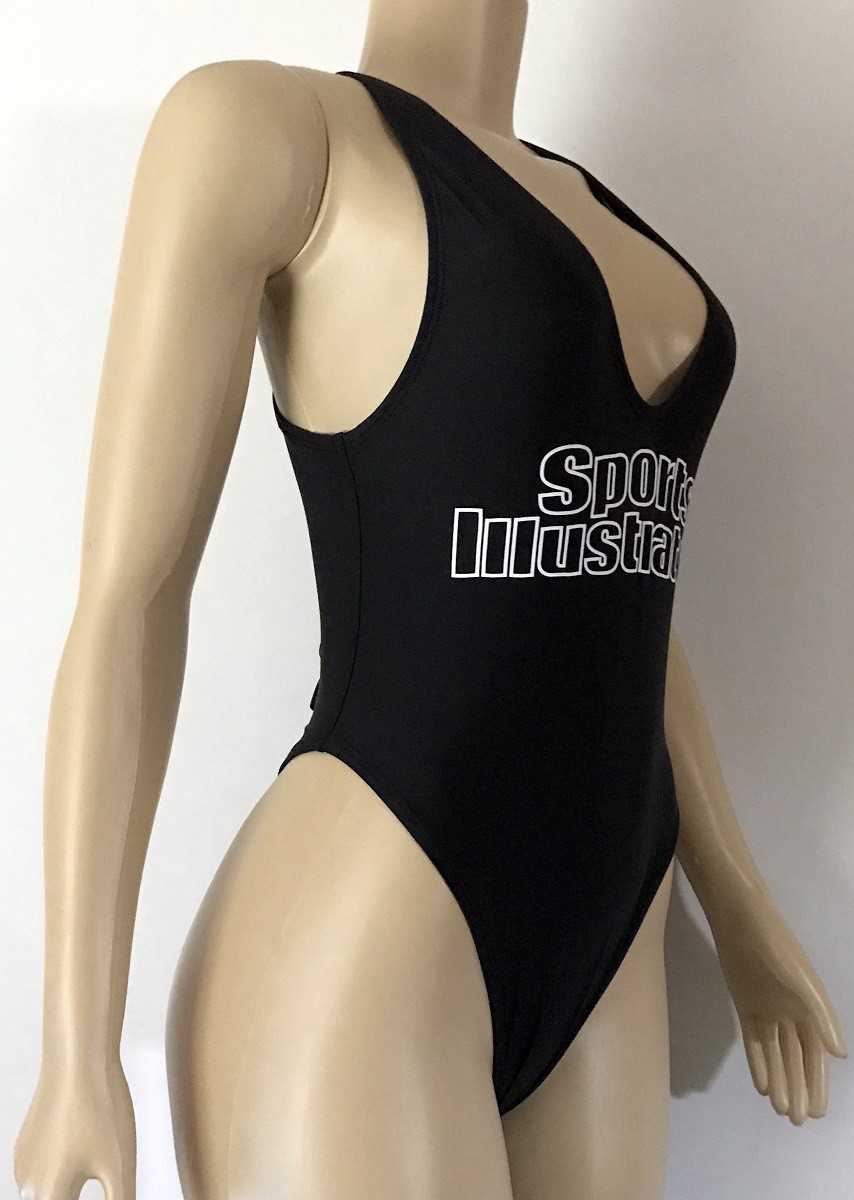 Hit the beach in this plunging neckline solid one-piece with an open back and minimal coverage. For those looking to channel their inner cover model, be the envy of the beach in the authentic Sports Illustrated High Leg Maillot in Black