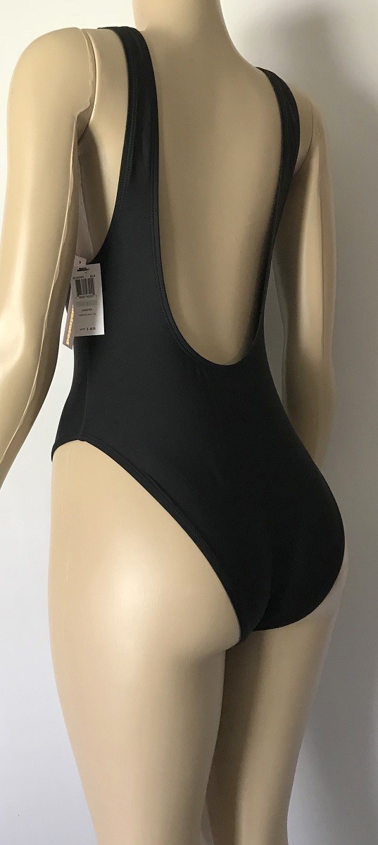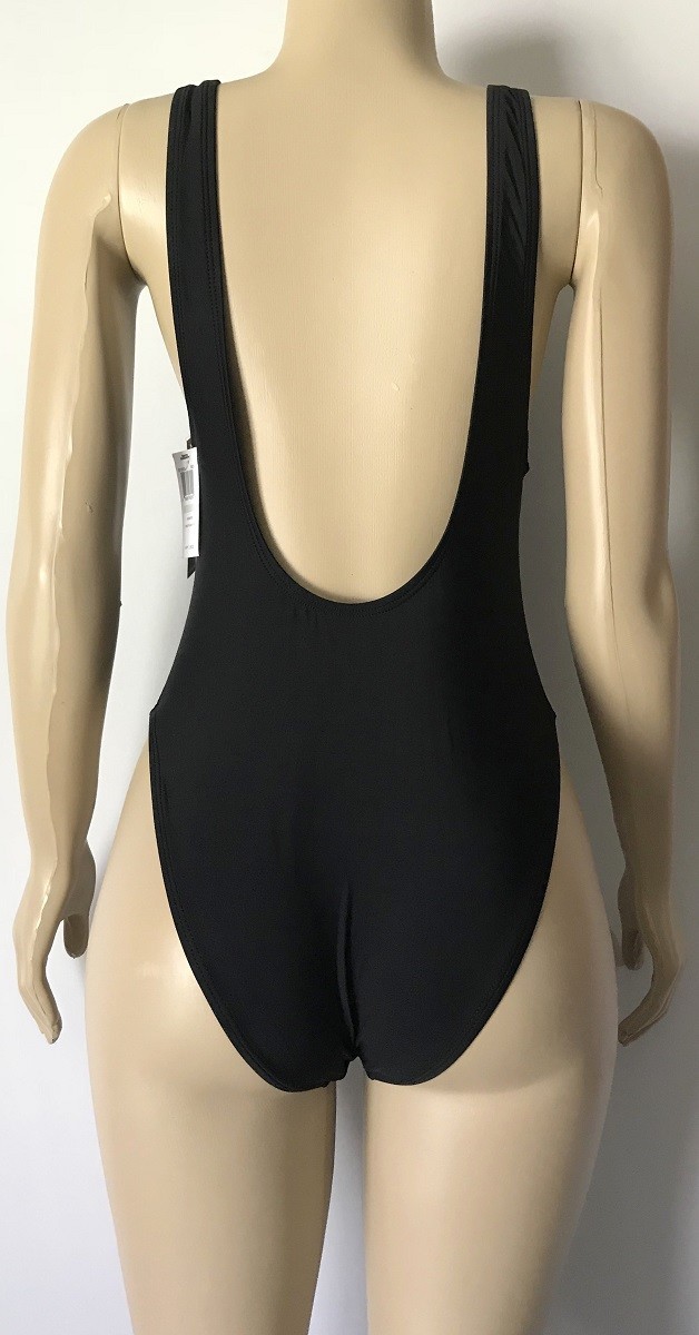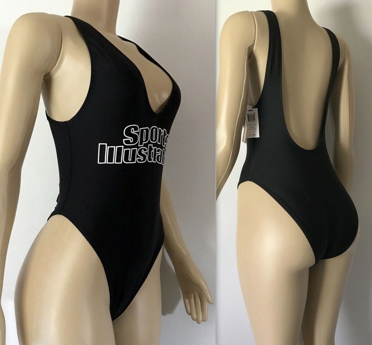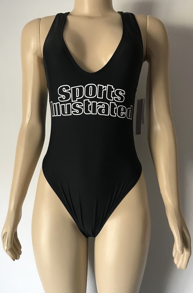 Hit the beach in this plunging neckline solid one-piece with an open back and minimal coverage. For those looking to channel their inner cover model, be the envy of the beach in the authentic Sports Illustrated High Leg Maillot in Black