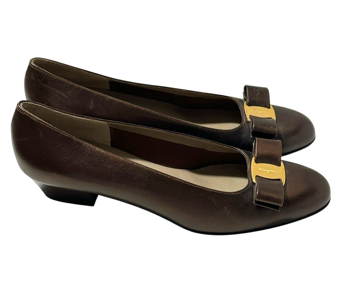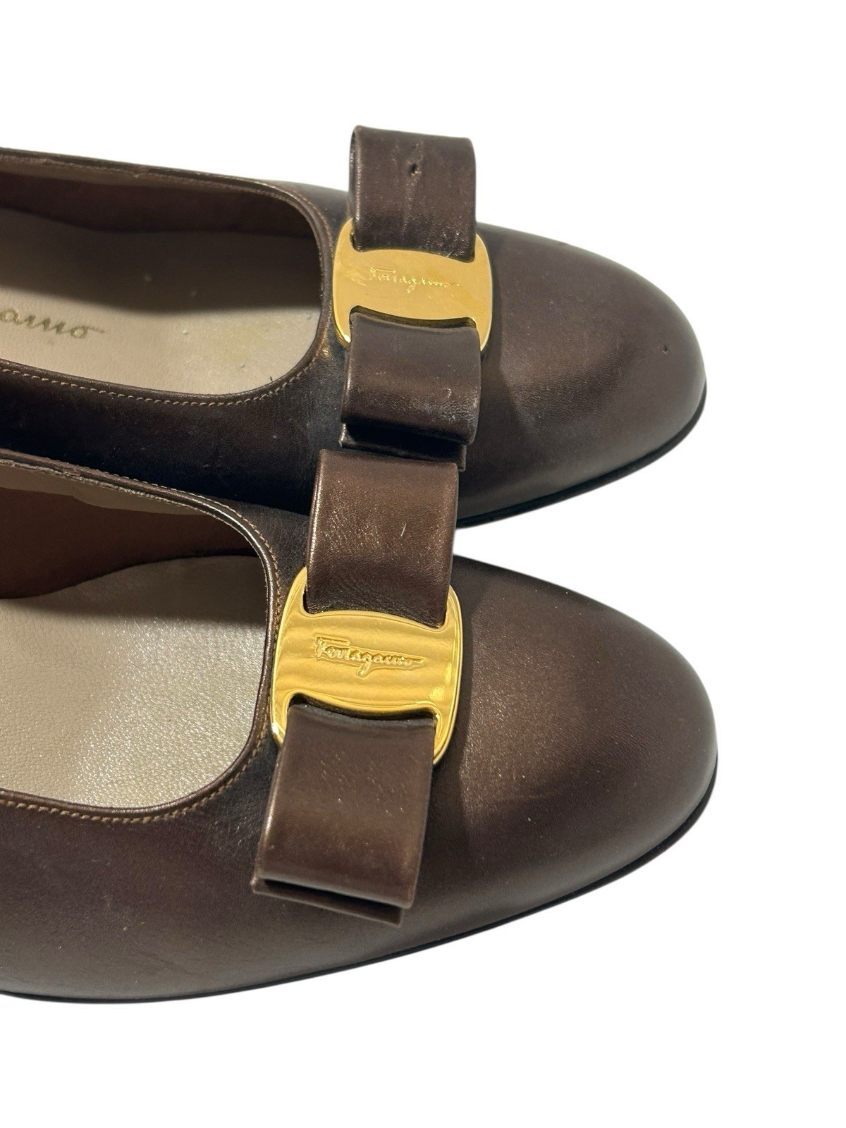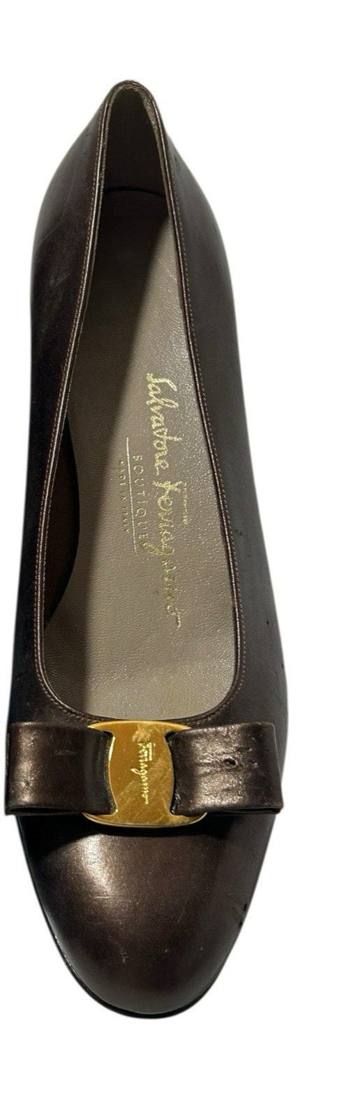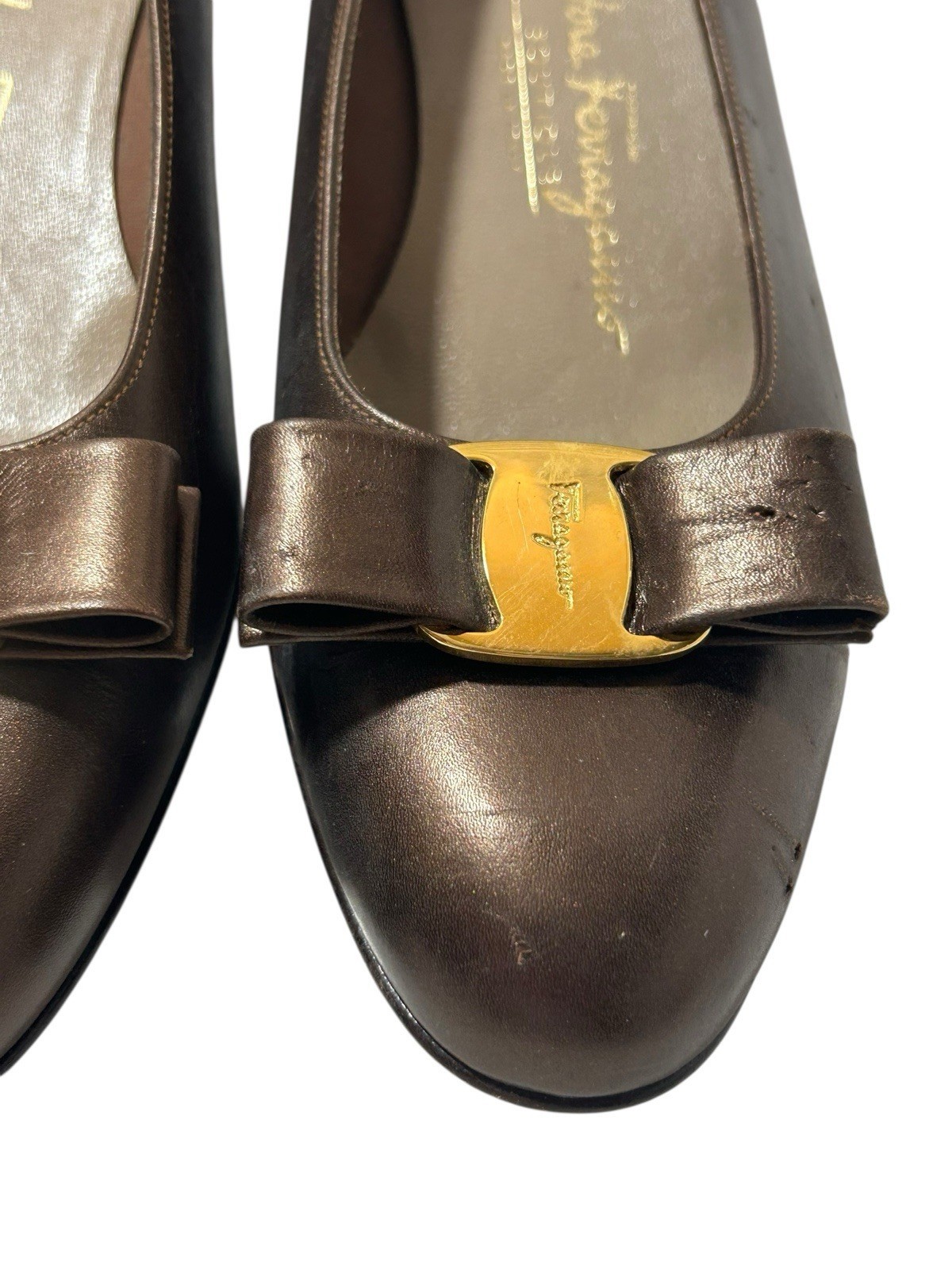 Salvatore Ferragamo Italy Vara Copper Bow Leather Slip On Shoes Pumps 9 B Heel