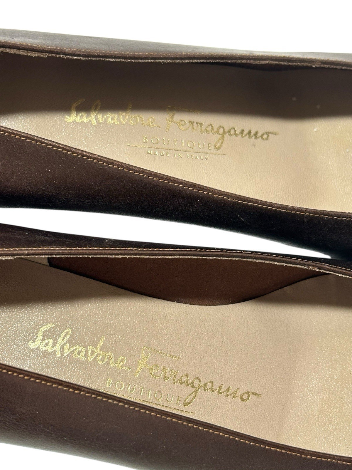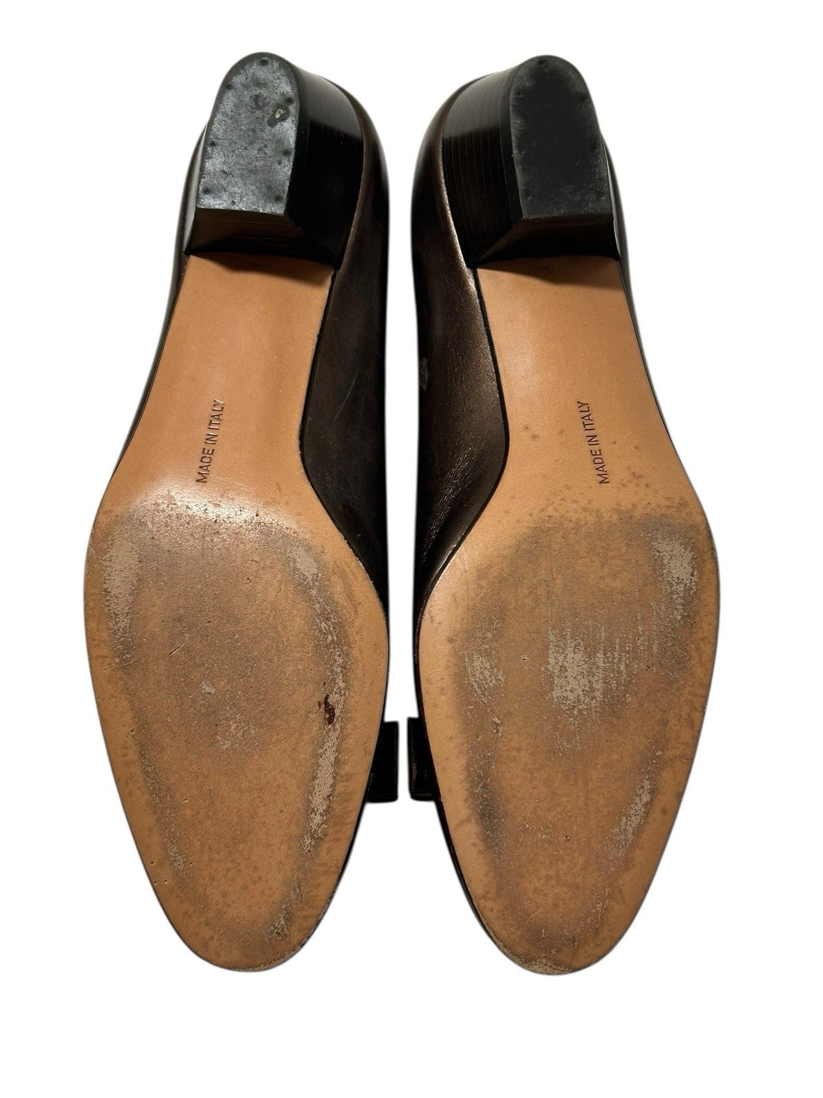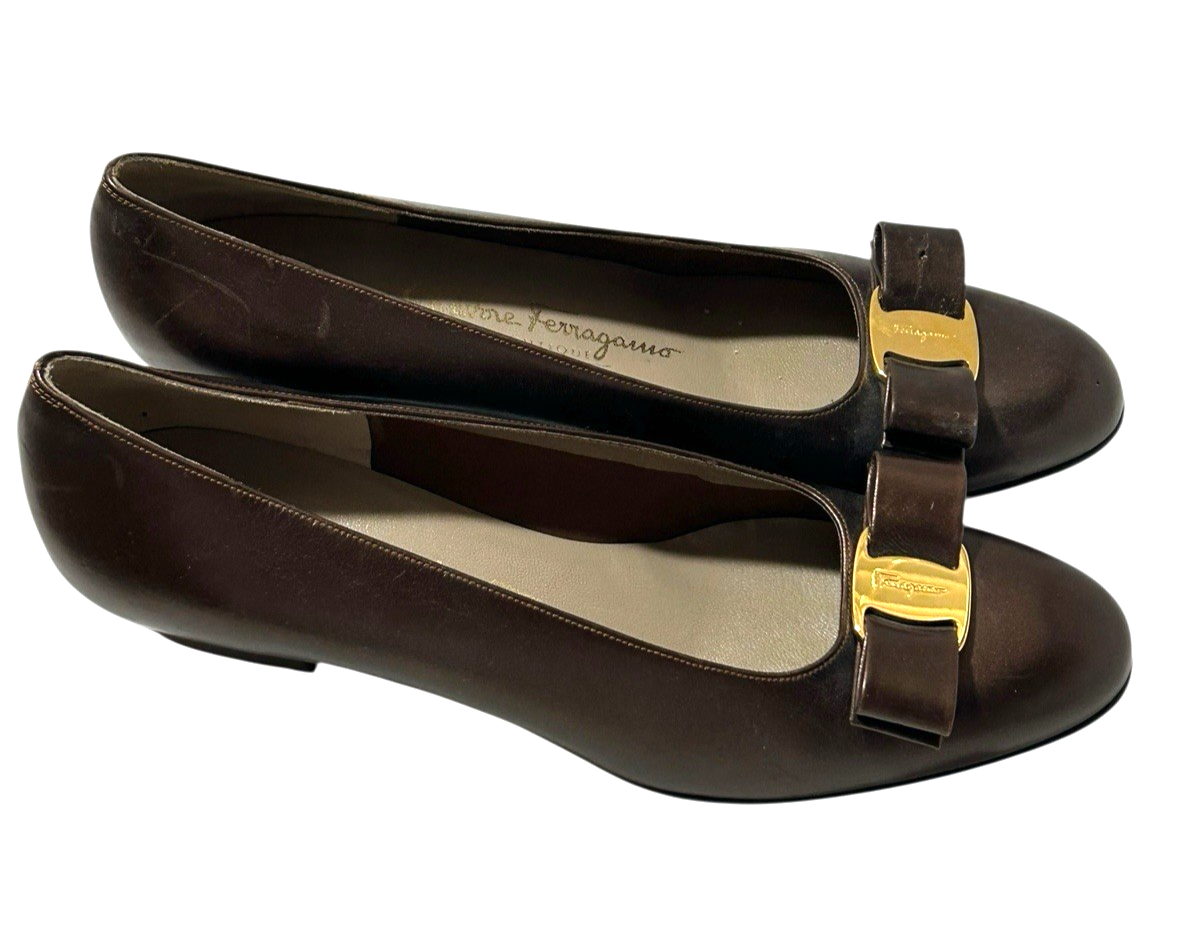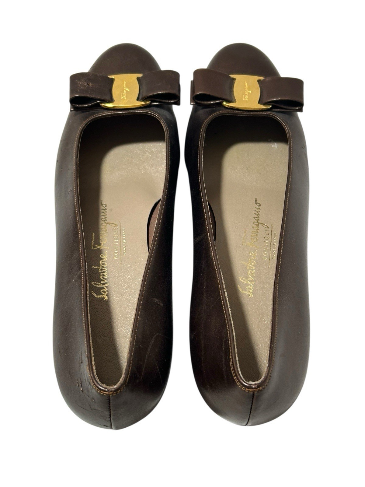 Salvatore Ferragamo Italy Vara Copper Bow Leather Slip On Shoes Pumps 9 B Heel