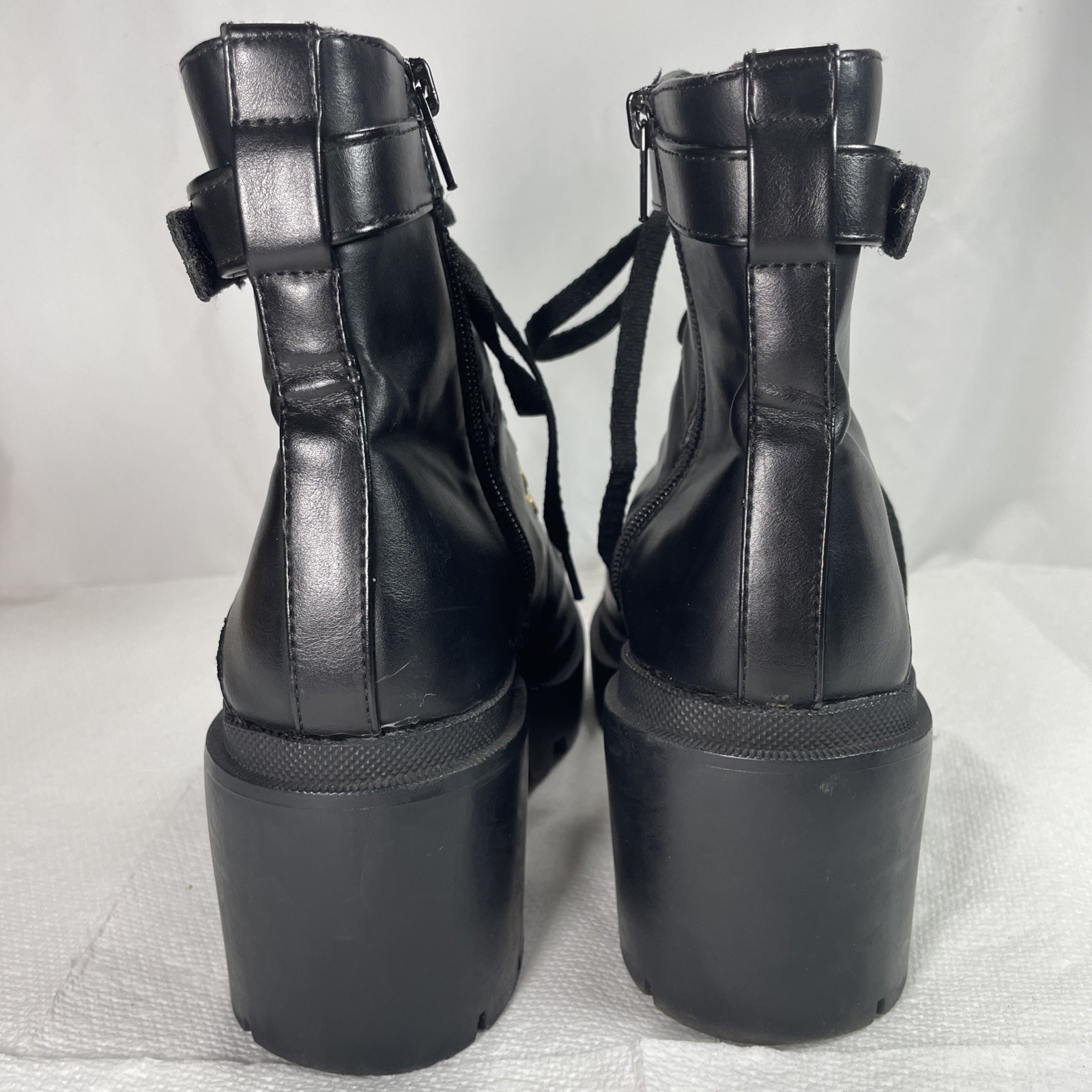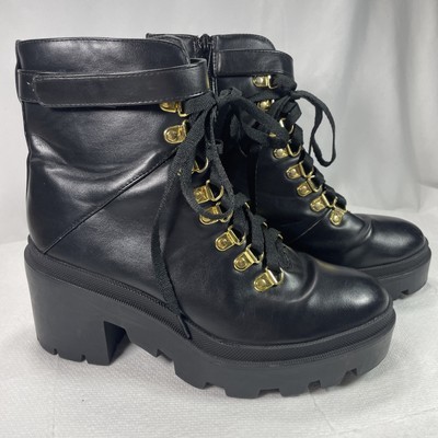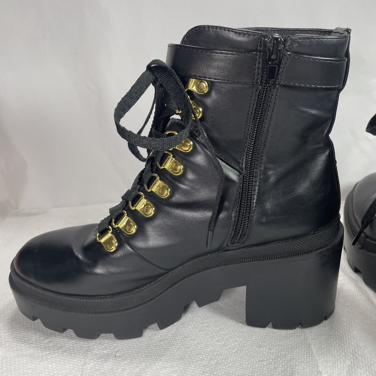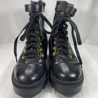 Womens Black Combat Boots Size 7 Lace-Up Loop w/Zip-up Close Chunky Platform