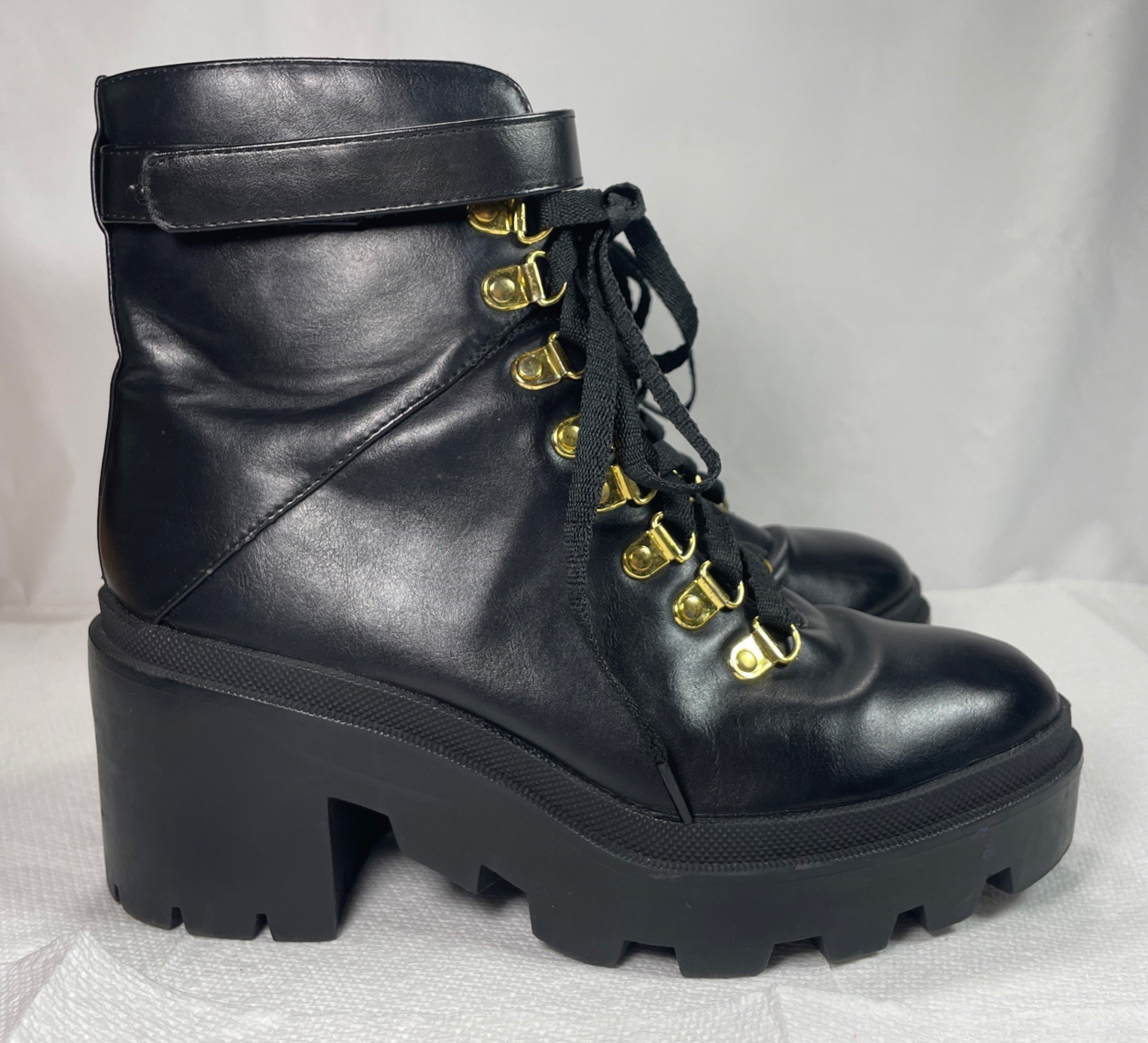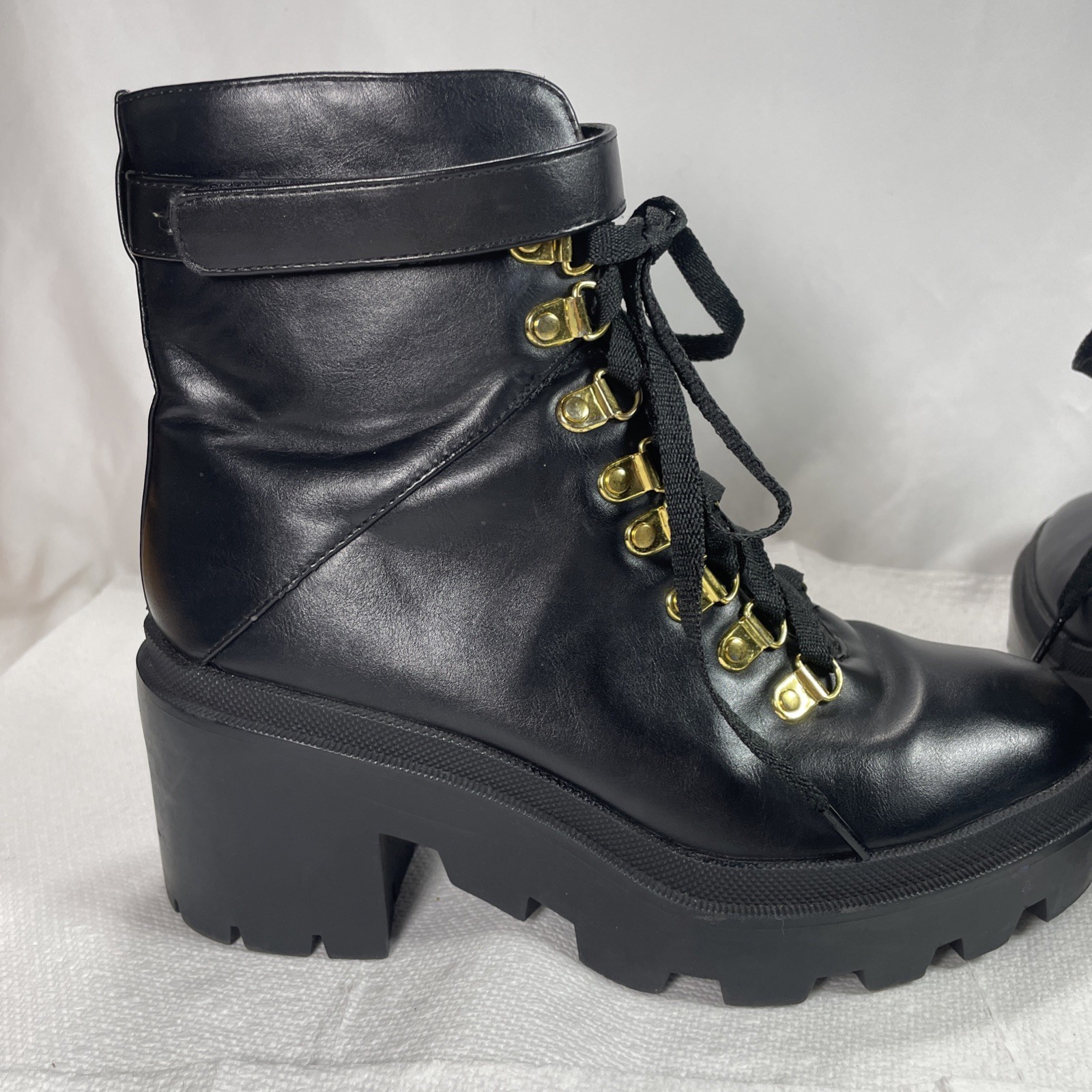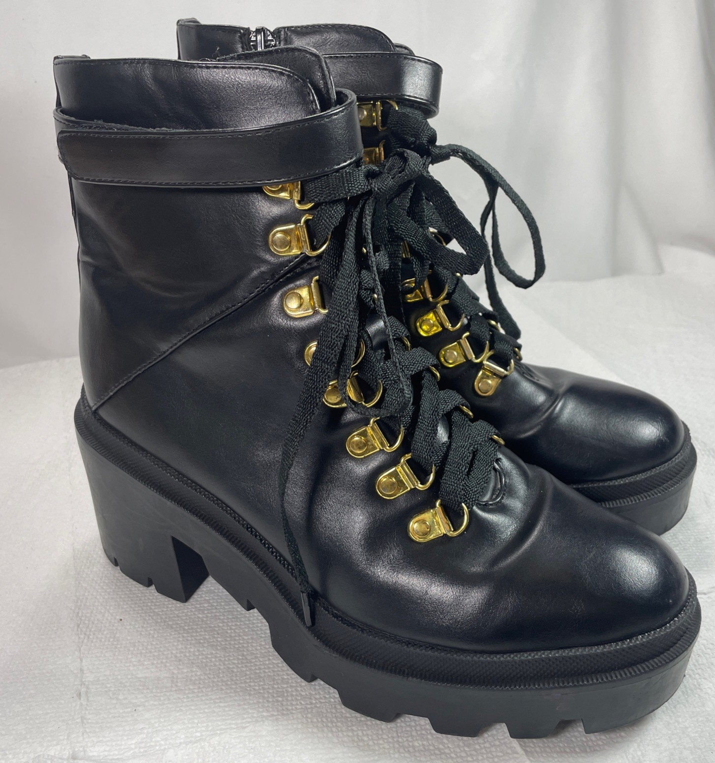 Womens Black Combat Boots Size 7 Lace-Up Loop w/Zip-up Close Chunky Platform