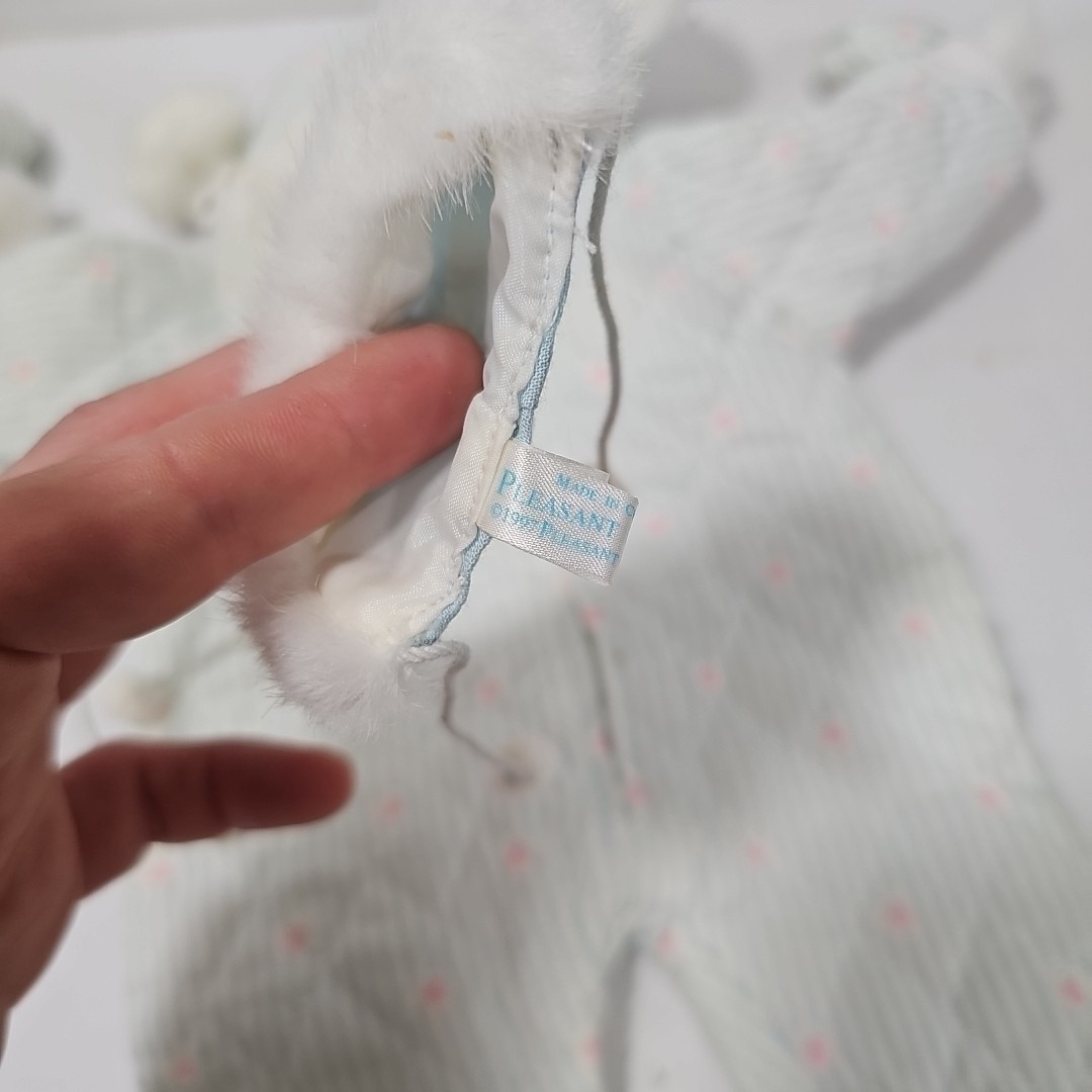 The American Girl Bitty Bear's Frosty Fun 1997 Snowsuit Set is a vintage collectible featuring Bitty Baby in a white and soft blue snowsuit with mittens and a toy. This original set from 1997 includes a cloth snowsuit, mittens, and a book, all designed for a 15-inch baby doll. The American Girl franchise and brand add to the appeal of this nostalgic theme, perfect for collectors of vintage doll clothes and accessories from the 1990s.