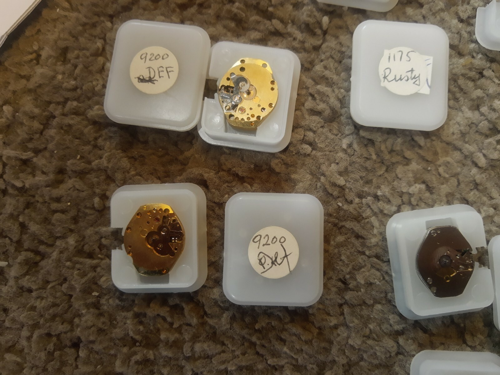 I have 12 of the same looking or style watch movements here. These are for repair or parts. Looks like they are HELBROS and some ETA ESA movements.
