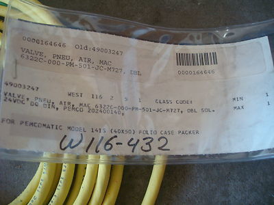 MAC Pneumatic Solenoid Valve w/ Cable modules #- M727, PMD-501JC This is in great condition - nearly new!!!!. Got this off Nestle Company overstock auction. Model number of main unit - 6322c-000-PM-501JC Valve Modules on either side of the unit Please look at pictures. you get what is pictured. Will ship international.
